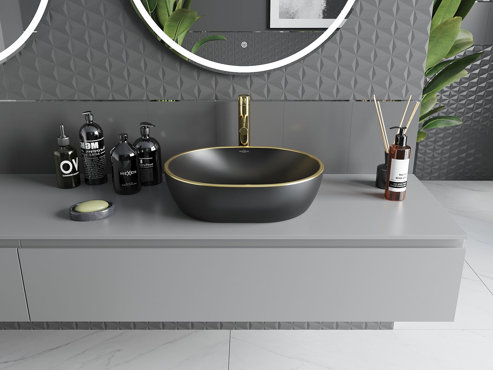 Mexen Viki praustuvė ant stalviršio 48 x 35 cm, juoda matinė/auksinis kraštas - 21054875
