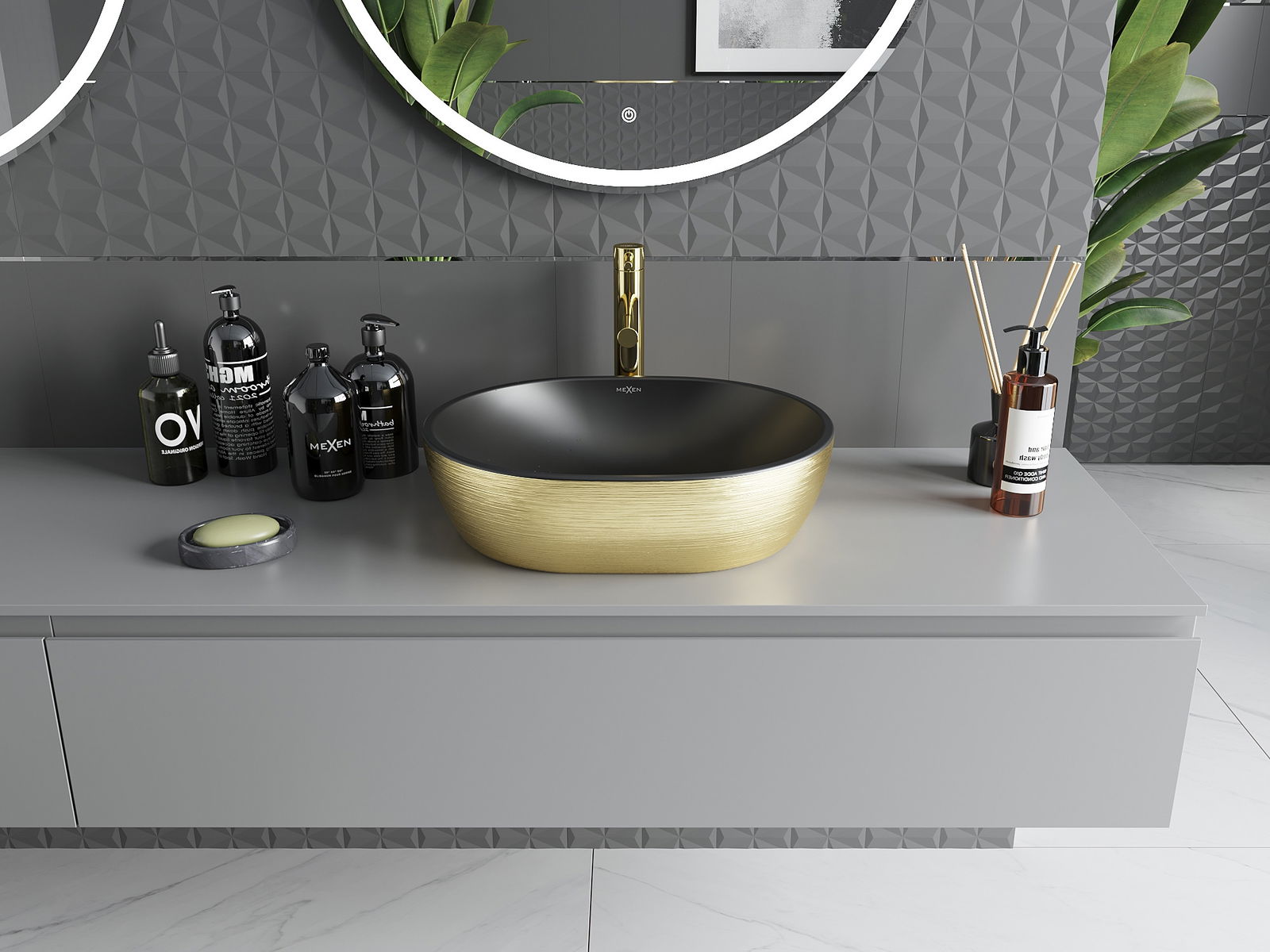 Ant stalviršio praustuvas yra idealus sprendimas šiuolaikiškiems interjerams. Su matmenimis 48x35 cm ir gilumu 11,5 cm, puikiai tiks bet kurioje vonios kambaryje. Jo elegantiškas juodas matinės paviršius su auksiniu raštu linijomis yra stiliaus ir funkcionalumo derinys. Pagamintas iš aukštos kokybės sanitarinės keramikos, praustuvas yra ne tik estetiškas, bet ir atsparus. Be maišytuvo ir persipylimo angų, jis atspindi minimalistinį dizainą, kuris paryškins jūsų erdvės charakterį.