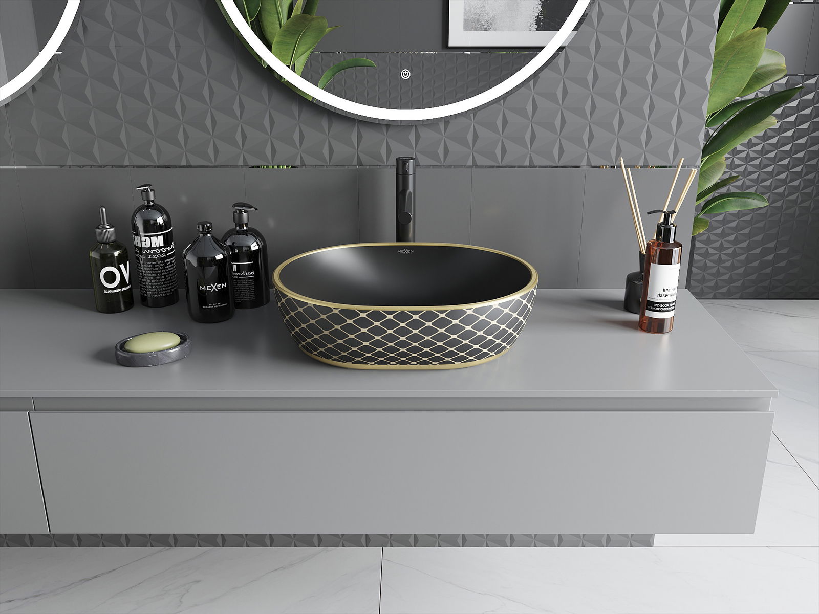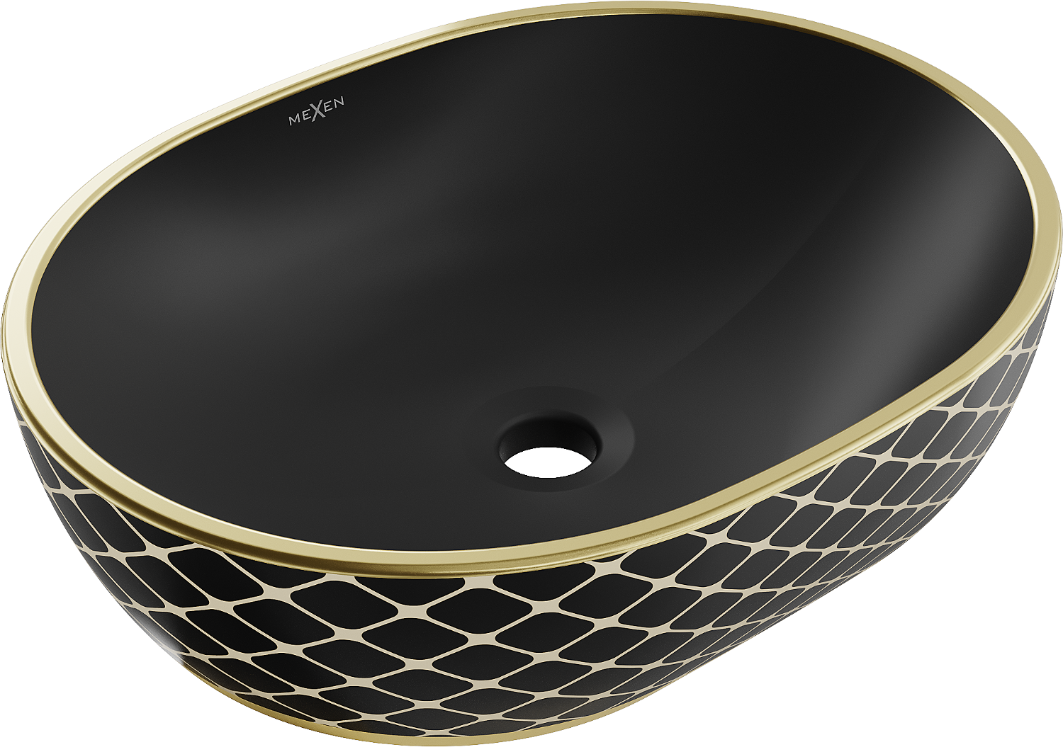 Mexen Viki stalviršio praustuvas 48 x 35 cm, juodas matinis/auksinis grotelinis raštas - 21054879