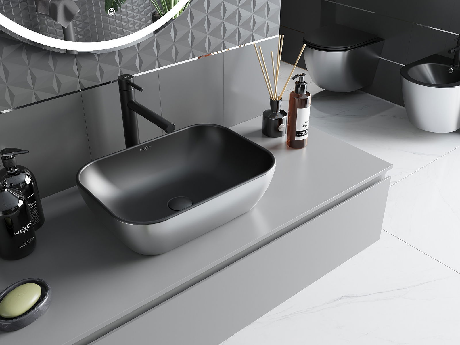 Matte keramikos paviršius puikiai pabrėžia produkto spalvos pobūdį, suteikdamas jai unikalų ir išraiškingą apdailą. Subtili matinės keramikos struktūra pristato eleganciją vonios kambaryje, sukurdama estetinę erdvę.