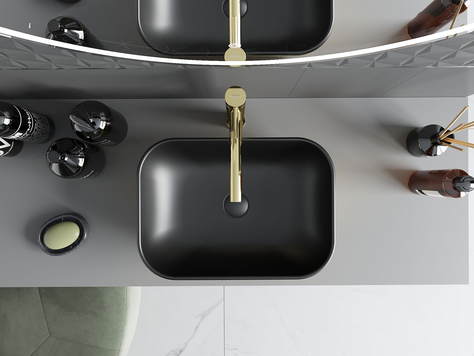 Matte keramikos paviršius puikiai pabrėžia produkto spalvos pobūdį, suteikdamas jai unikalų ir išraiškingą apdailą. Subtili matinės keramikos struktūra pristato eleganciją vonios kambaryje, sukurdama estetinę erdvę.