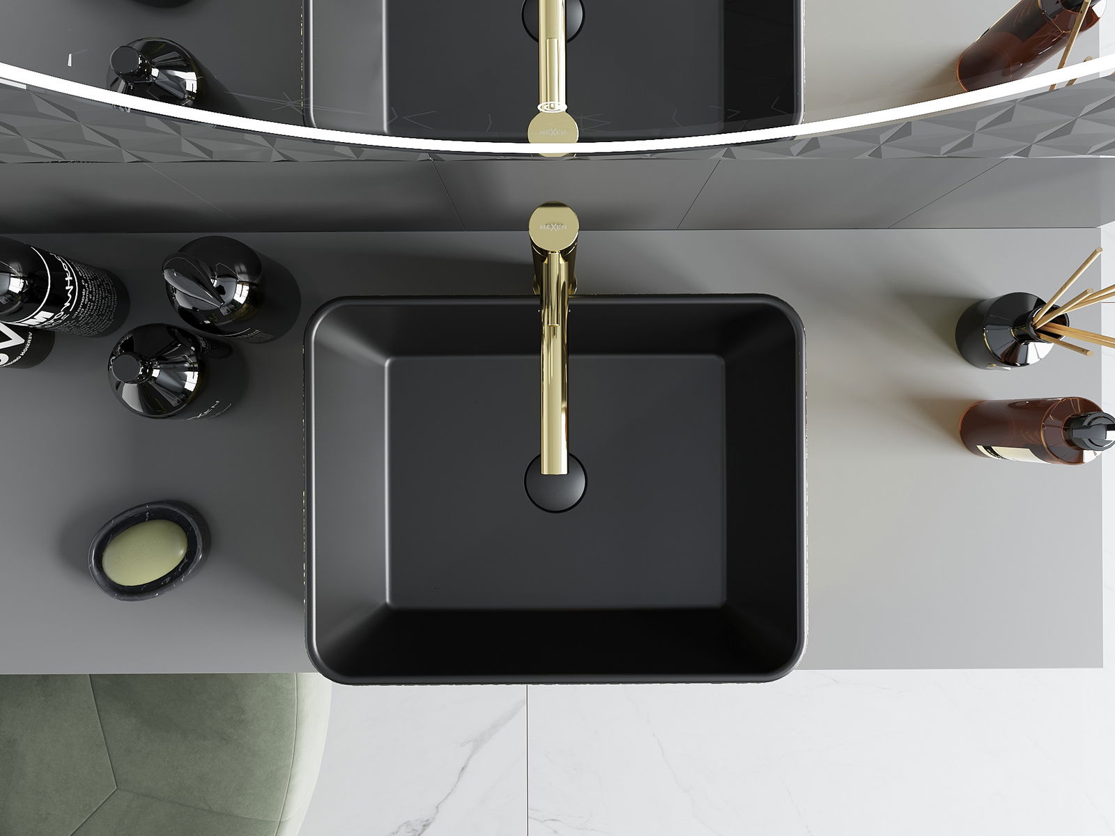 Matte keramikos paviršius puikiai pabrėžia produkto spalvos pobūdį, suteikdamas jai unikalų ir išraiškingą apdailą. Subtili matinės keramikos struktūra pristato eleganciją vonios kambaryje, sukurdama estetinę erdvę.
