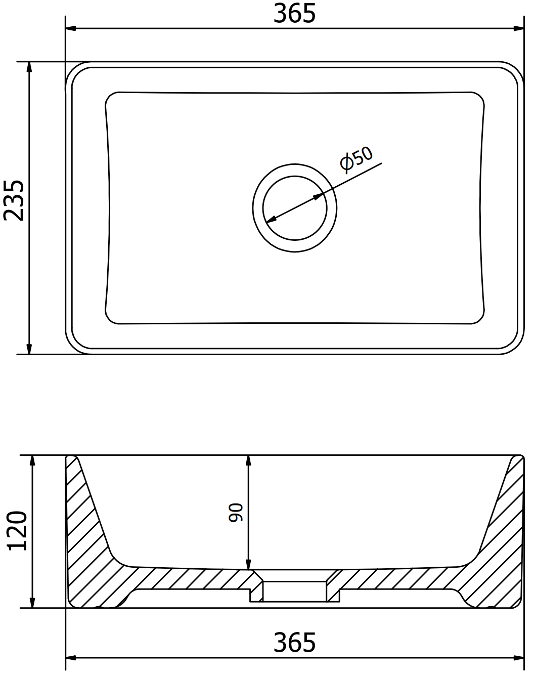 Mexen Nadia praustuvas ant stalviršio 36 x 23 cm, balta/juoda kraštas - 21613607