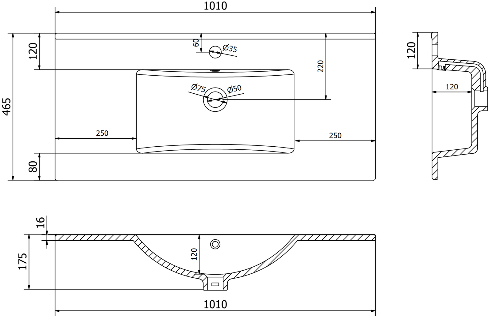 Mexen Atena įleidžiamas praustuvas stalviršyje 101 x 46 cm, baltas - 25011000