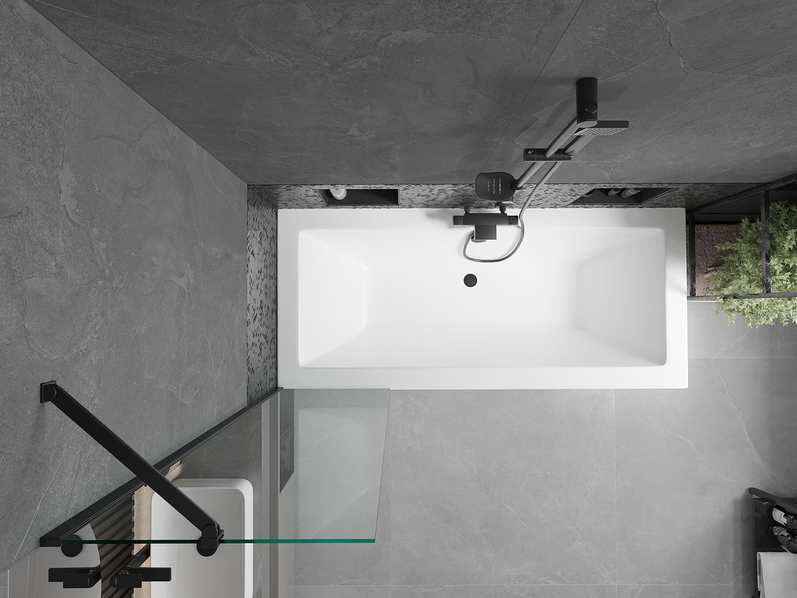 Veiksminga apsauga nuo vandens išsiliejimo maudymosi metu. Ekrane yra antspaudai, kurie puikiai prisitaiko prie stiklo stiklo ir vonios krašto. Funkcinis sprendimas, užtikrinantis saugumą ir lengvą priežiūrą.