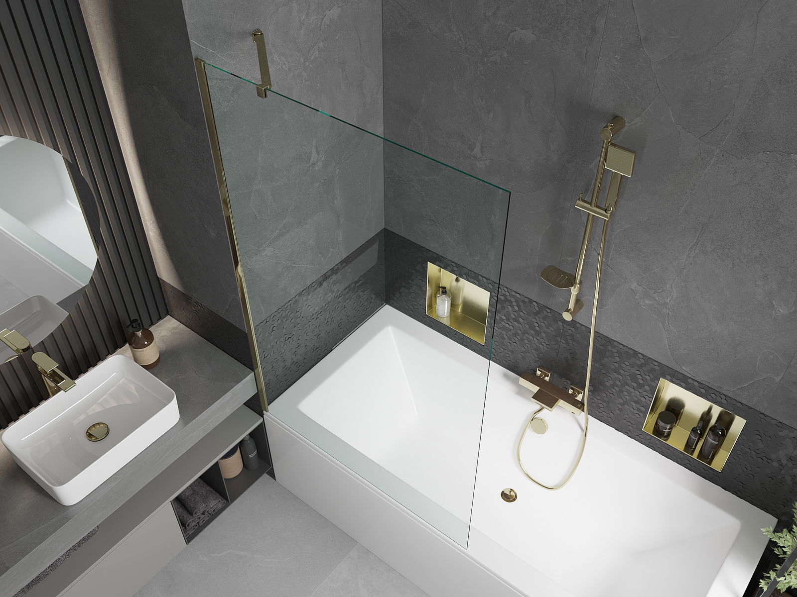 Mexen Cube stačiakampė vonia 180 x 80 cm su apdaila ir 1-durų pertvara 100 cm, permatoma, auksinė - 550518080X9510000050