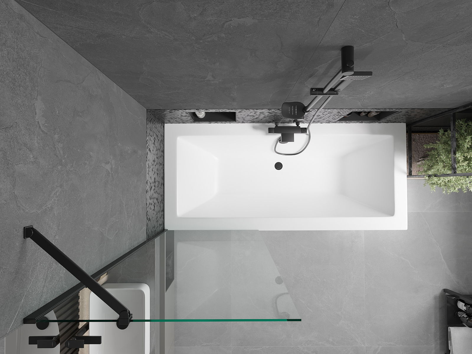 Mexen Cube stačiakampė vonia 180 x 80 cm su korpusu ir viena varstoma pertvara 70 cm, skaidri, juoda - 550518080X9507000070