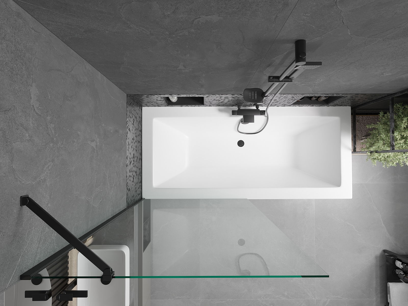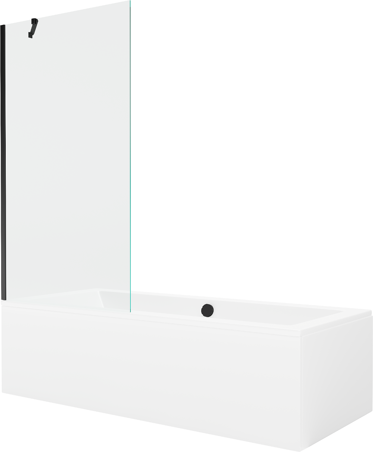 Mexen Cube stačiakampė vonia 180 x 80 cm su dangteliu ir 1-durų ekranu 90 cm, skaidrus, juodas - 550518080X9509000070