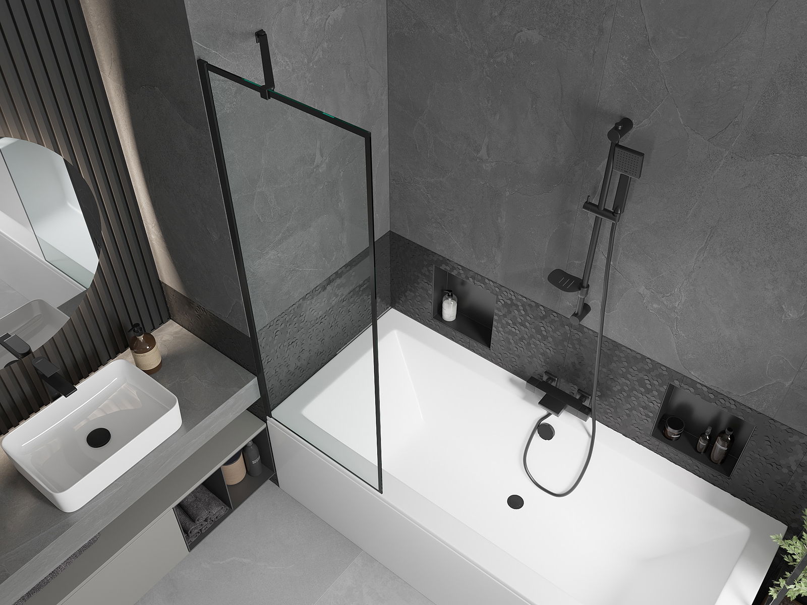 Mexen Cube stačiakampė vonia 180 x 80 cm su apdaila ir vienos dalies 60 cm širma, juodas raštas - 550518080X9506007070