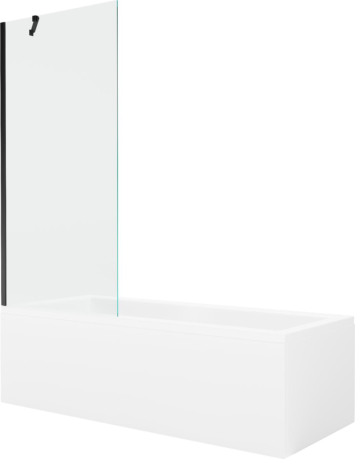 Mexen Cubik stačiakampė vonia 150 x 70 cm su apdaila ir vienos dalies 80 cm ekranu, skaidrus, juodas - 550315070X9508000070