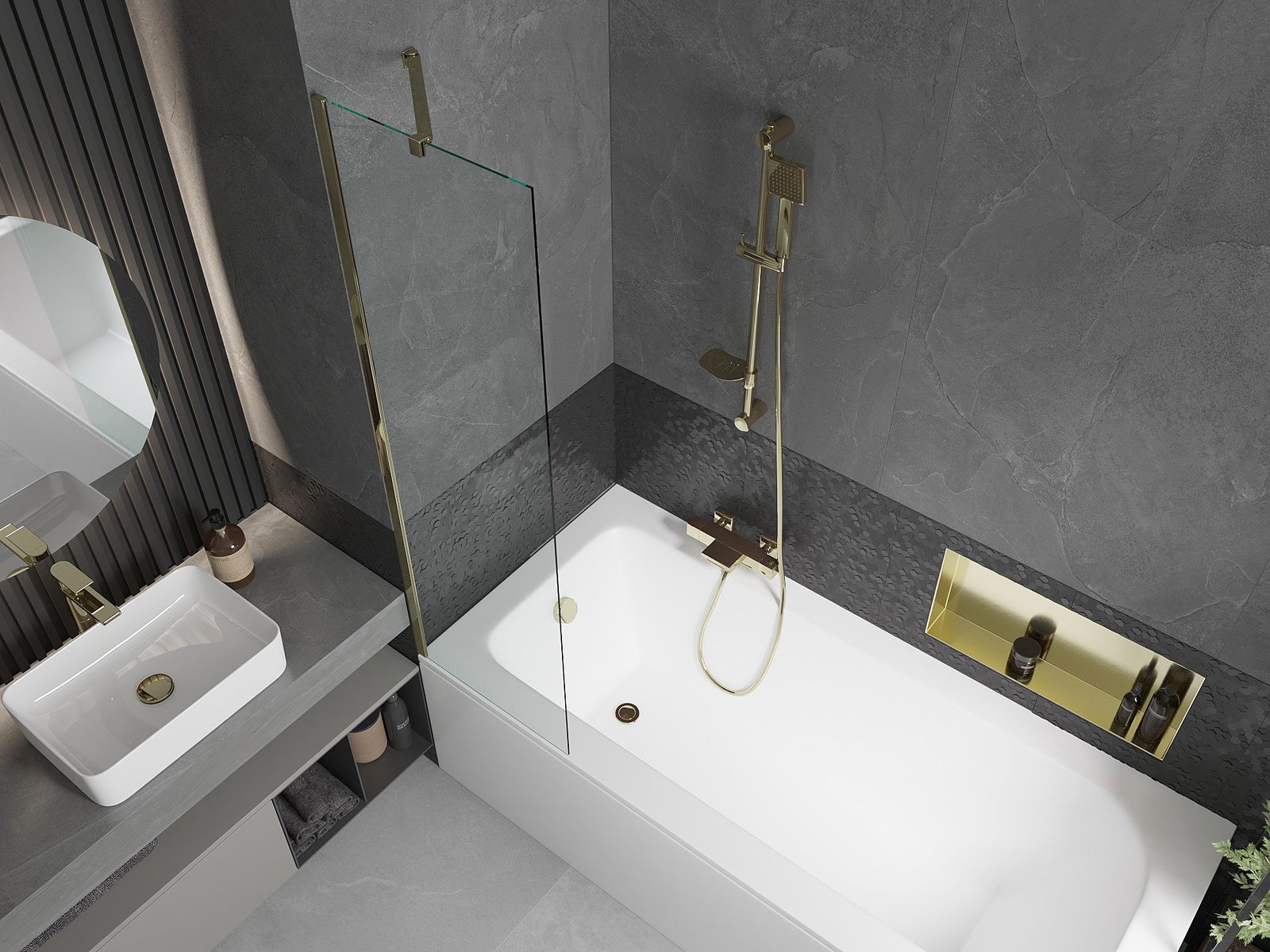 Mexen Vega stačiakampė vonia 170 x 70 cm su apdaila ir 1-durų ekranu 50 cm, permatomas, auksinis - 550117070X9505000050