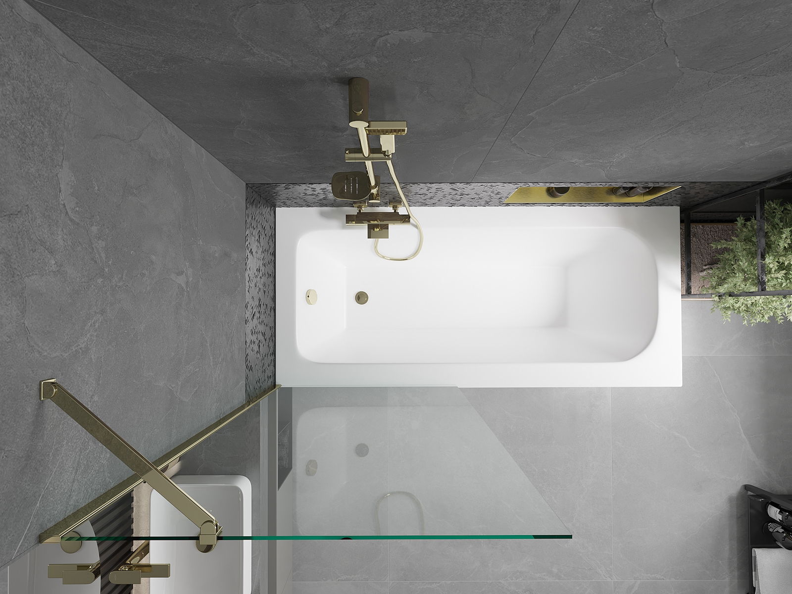 Mexen Vega stačiakampė vonia 170 x 70 cm su apdaila ir 1 dalių 80 cm ekranu, skaidri, auksinė - 550117070X9508000050