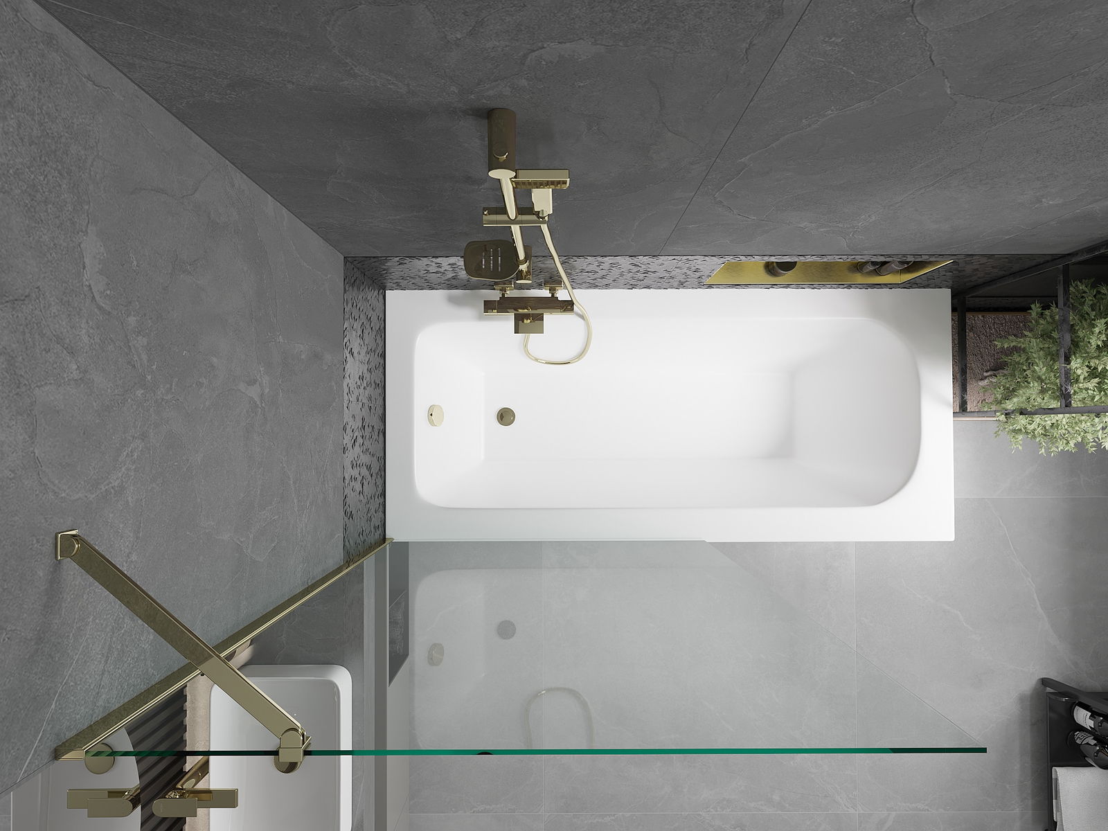 Mexen Vega stačiakampė vonia 170 x 70 cm su apdaila ir vienos dalies pertvara 100 cm, permatoma, auksinė - 550117070X9510000050
