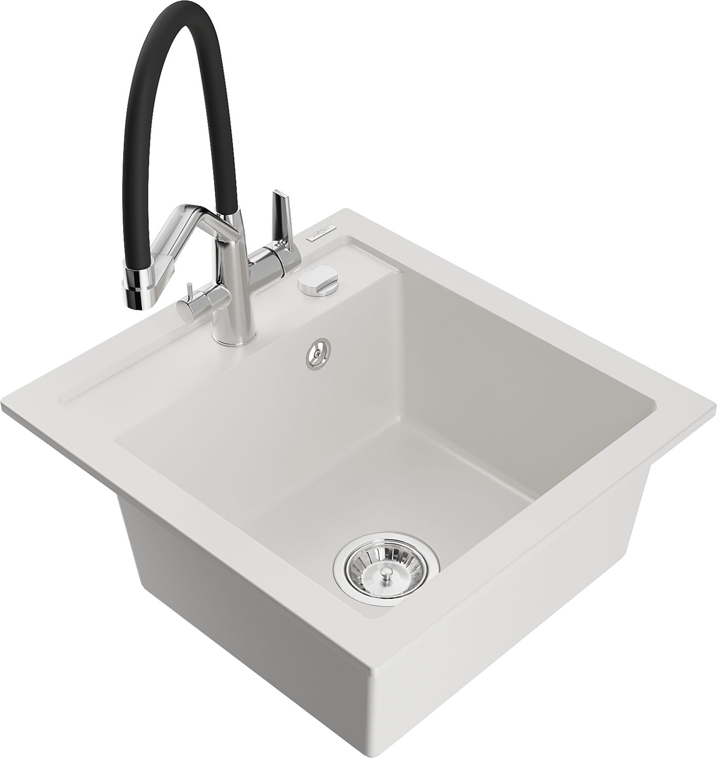 Mexen Vito granitinė virtuvės plautuvė 1 dubenų su Duo virtuviniu maišytuvu, balta - 6503-20-671701-07