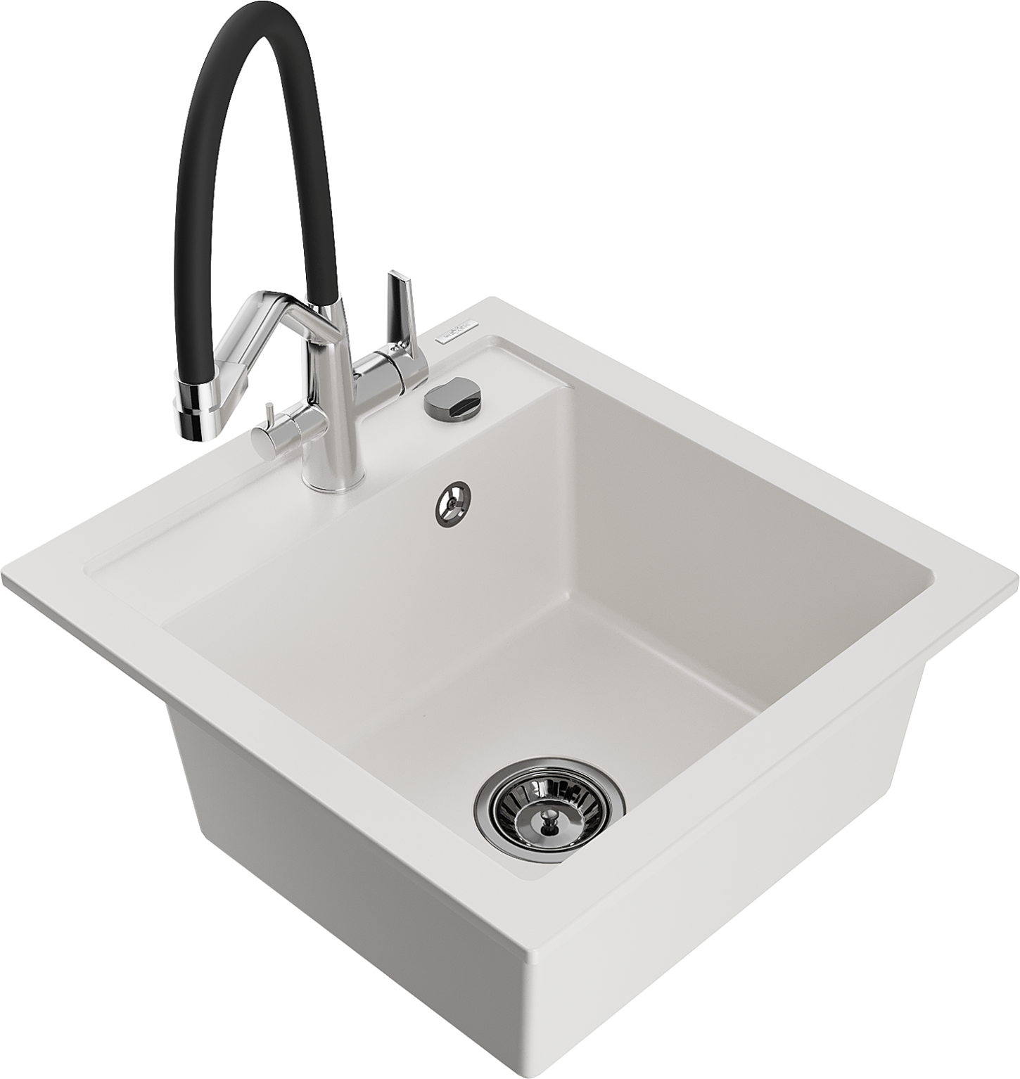 Mexen Vito granitinis plautuvė 1 kamerų su virtuviniu maišytuvu Duo, baltas - 6503-20-671701-07-B