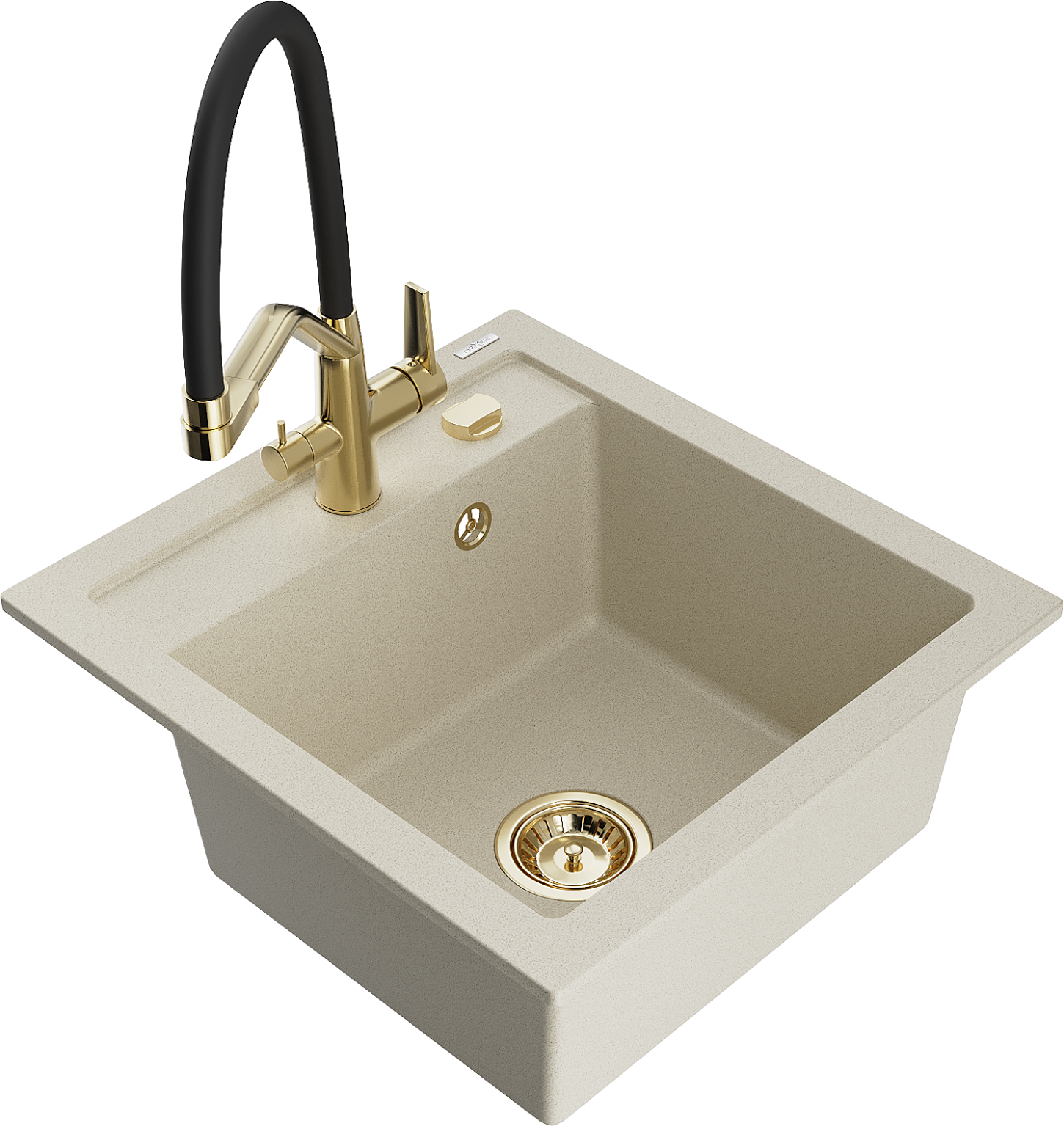 Mexen Vito akmens masės virtuvinis plautuvas su maišytuvu Duo, smėlio spalvos - 6503-69-671701-57-G