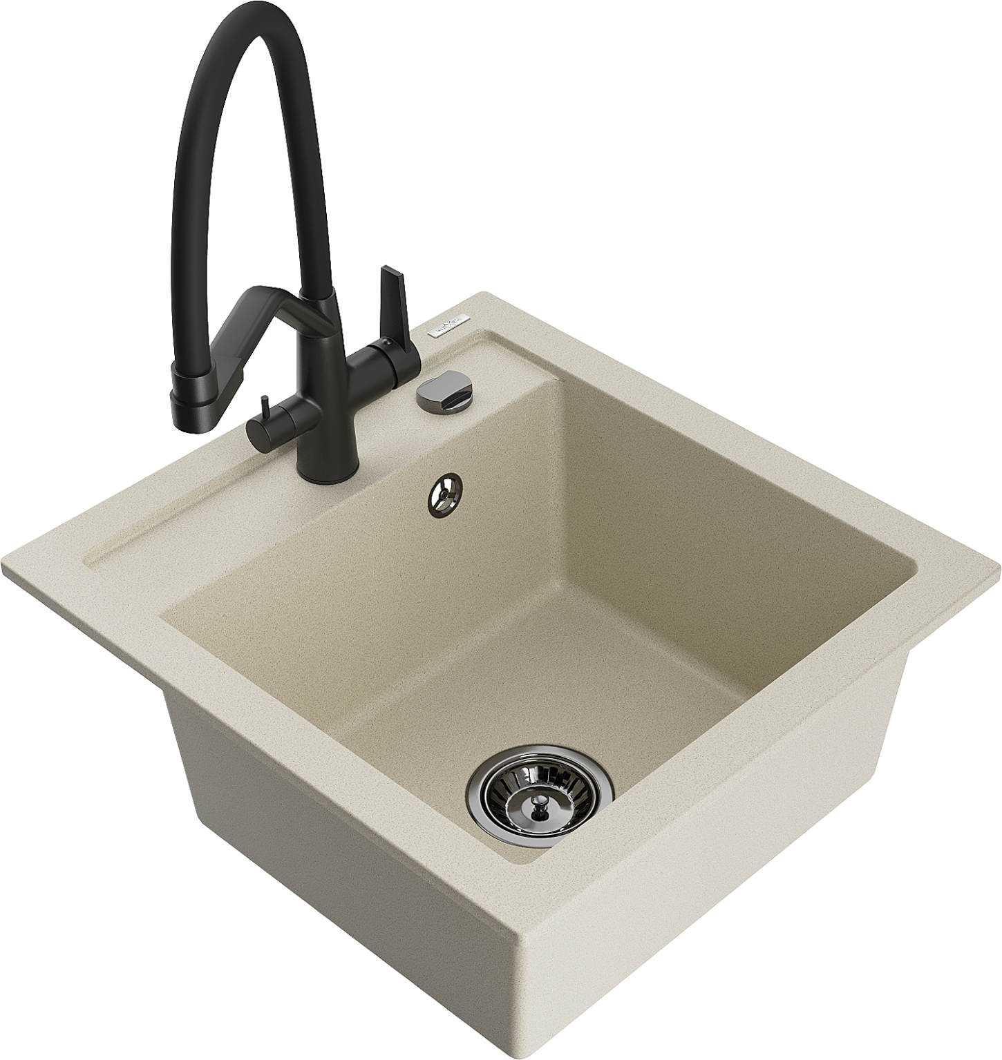 Mexen Vito vienos komoros virtuvės kriauklė su maišytuvu Duo, smėlio spalvos - 6503-69-671701-70-B