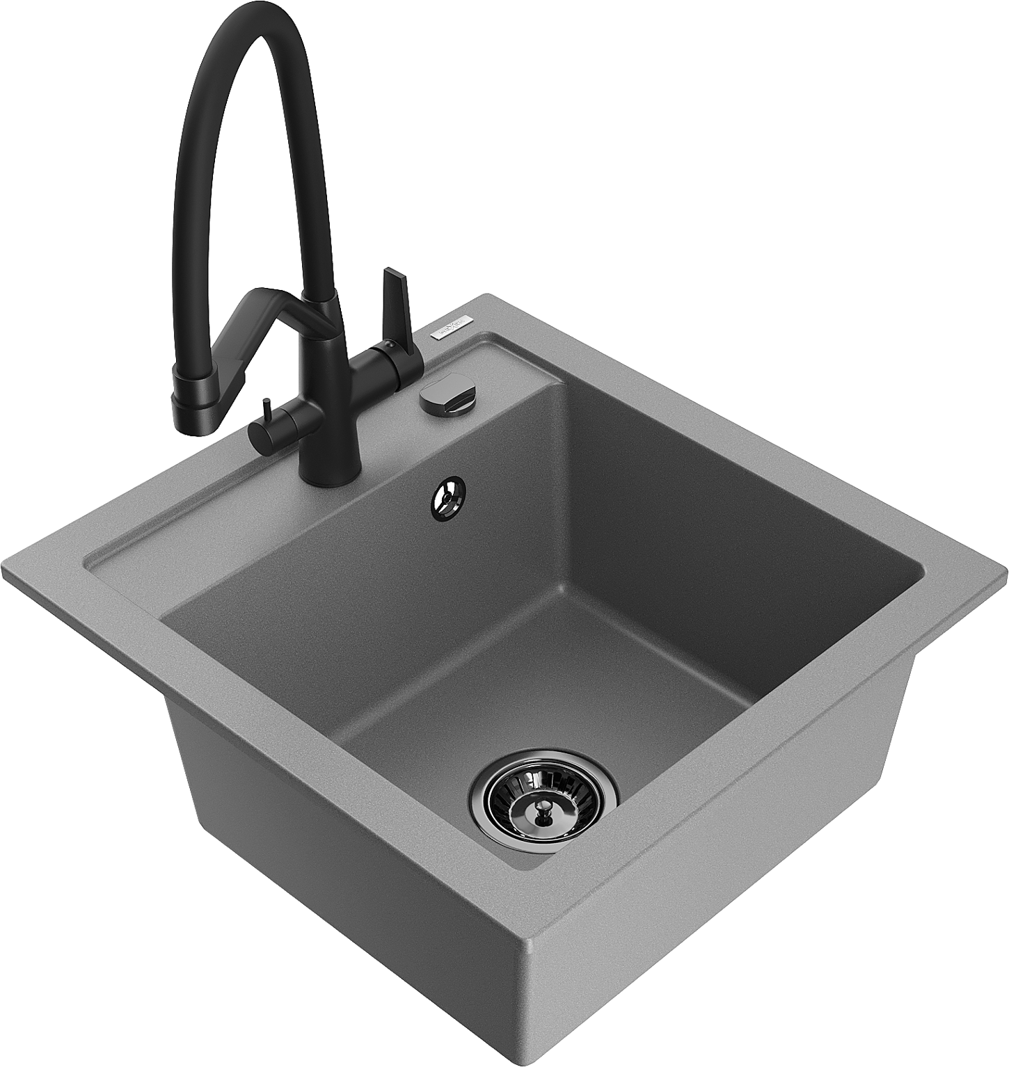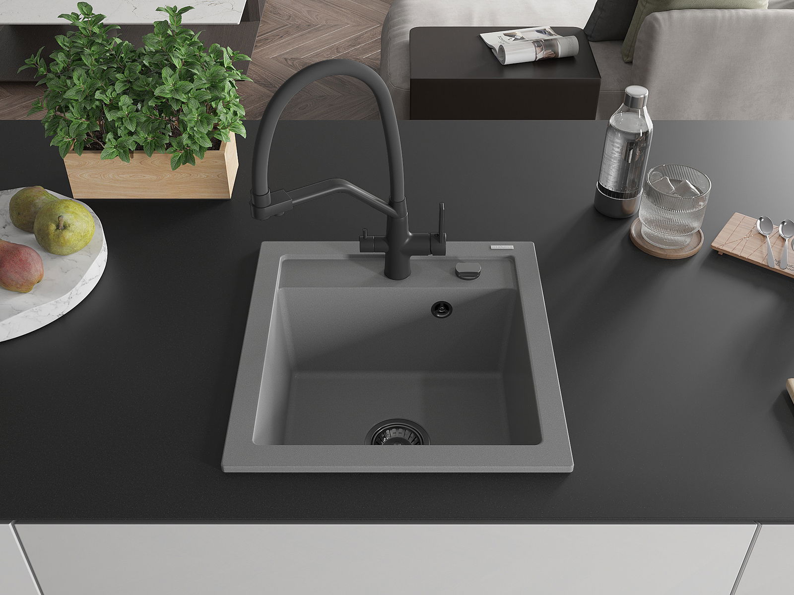 Mexen Vito granito plautuvė su vienu dubeniu ir Duo virtuviniu maišytuvu, pilka - 6503-71-671701-70-B