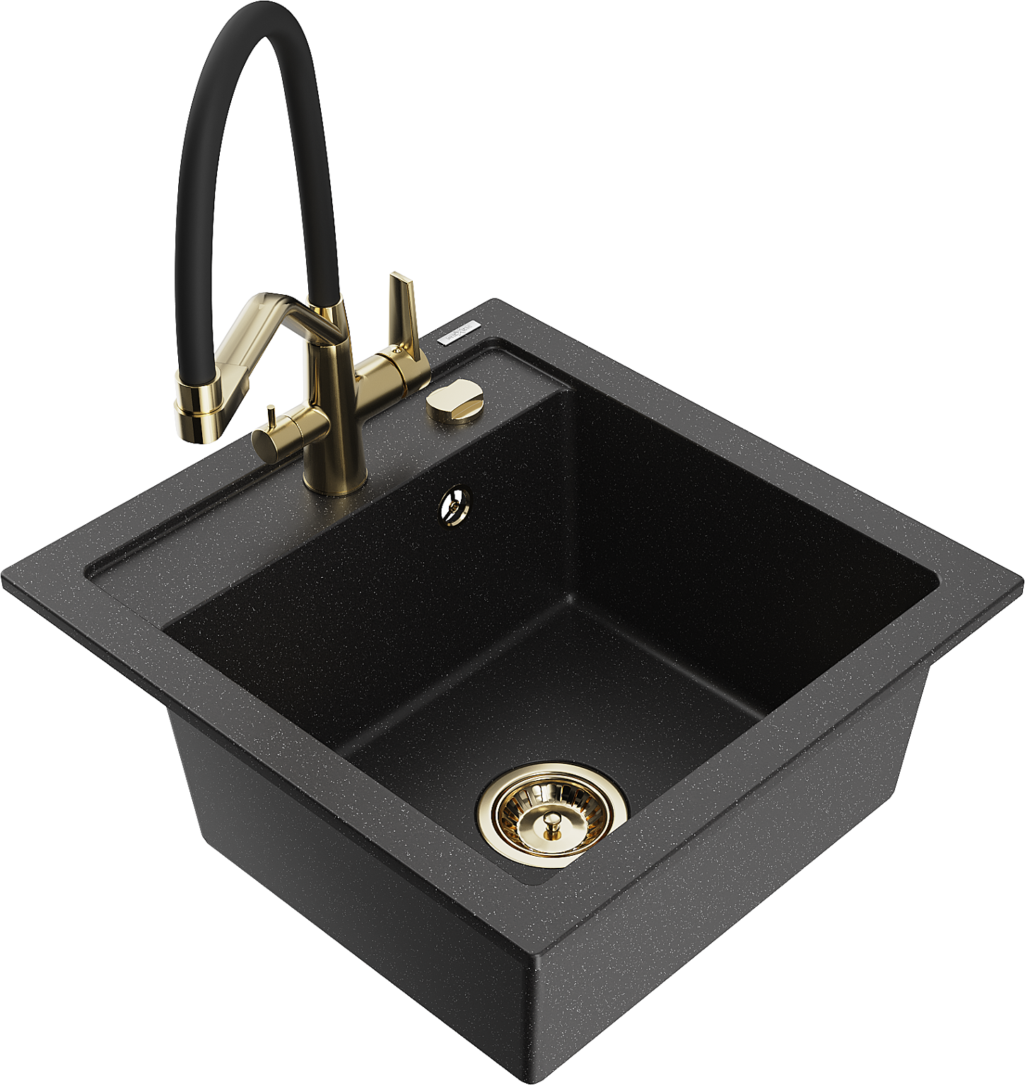 Mexen Vito granito plautuvė 1 skyrius su Duo virtuviniu maišytuvu, juoda/sidabrinė metalinė - 6503-73-671701-57-G