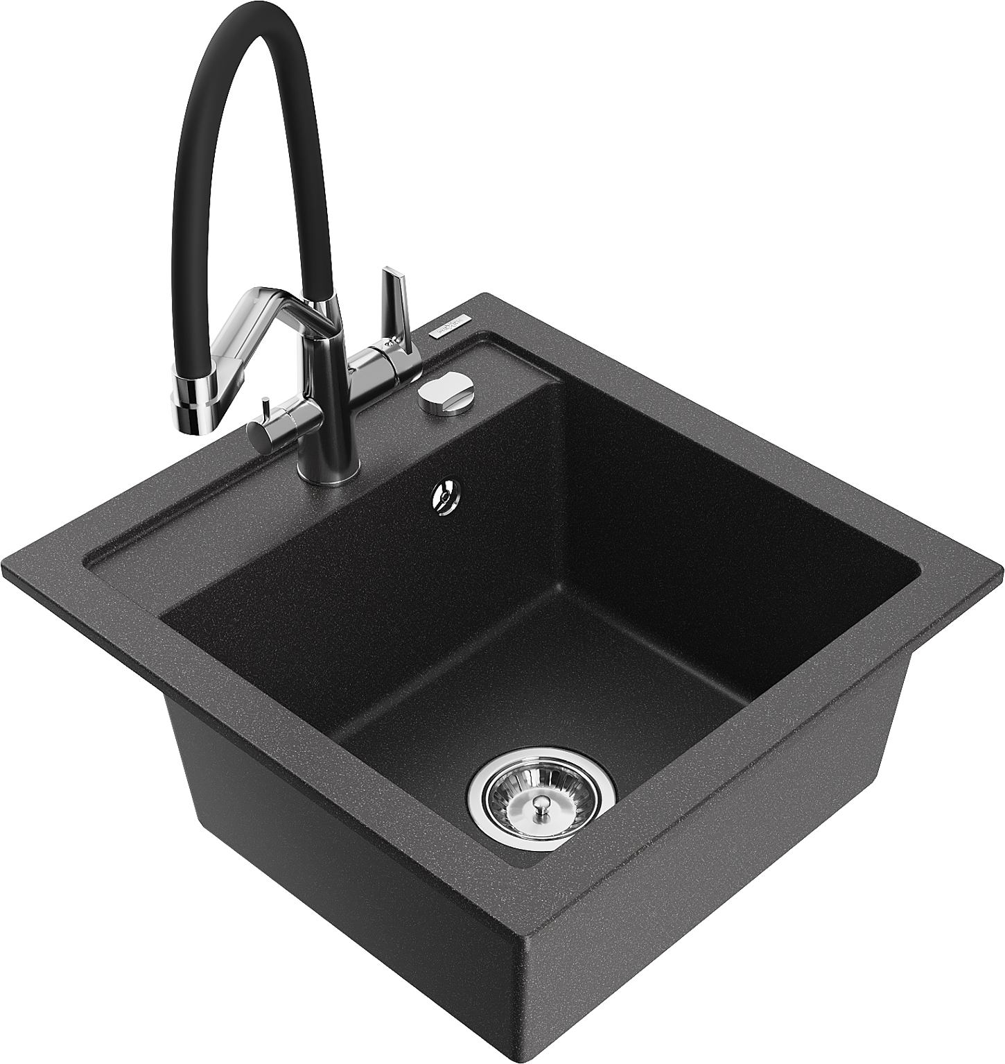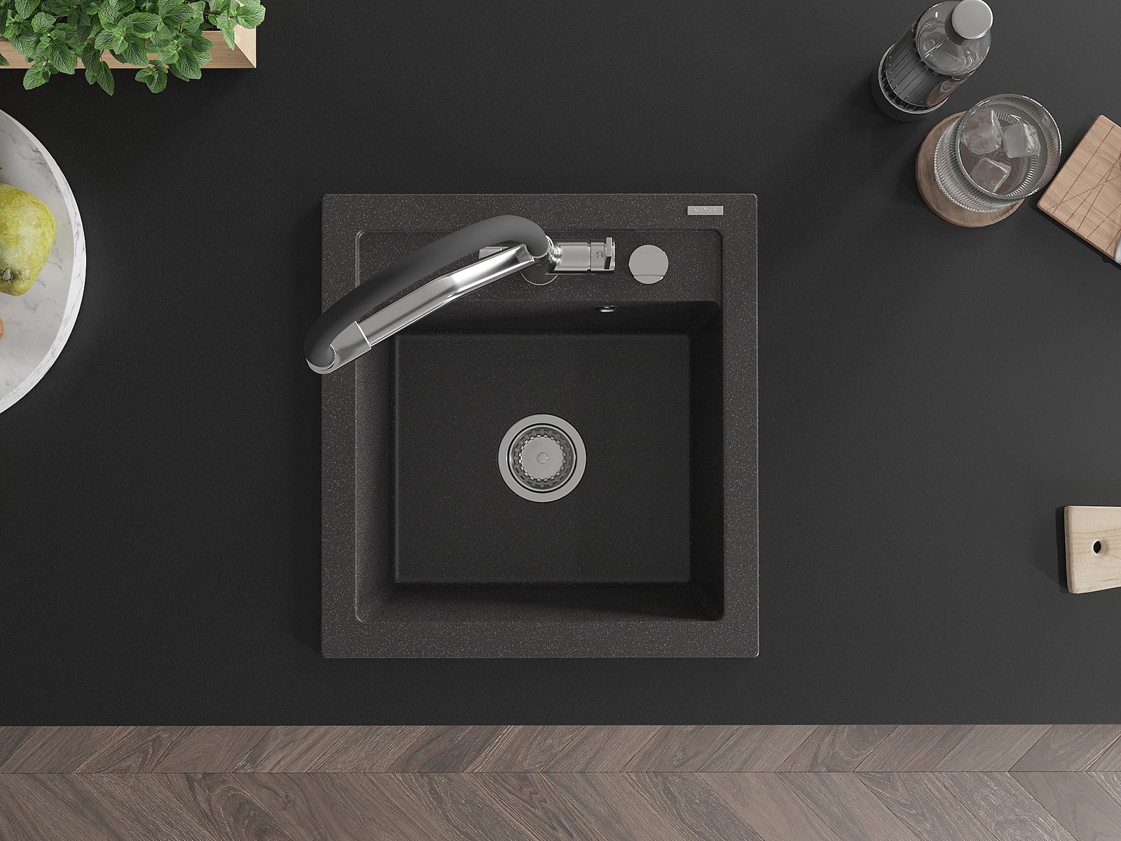 Mexen Vito vienos kameros granitinė kriauklė su virtuviniu maišytuvu Duo, juodas su dėmėmis - 6503-76-671701-07