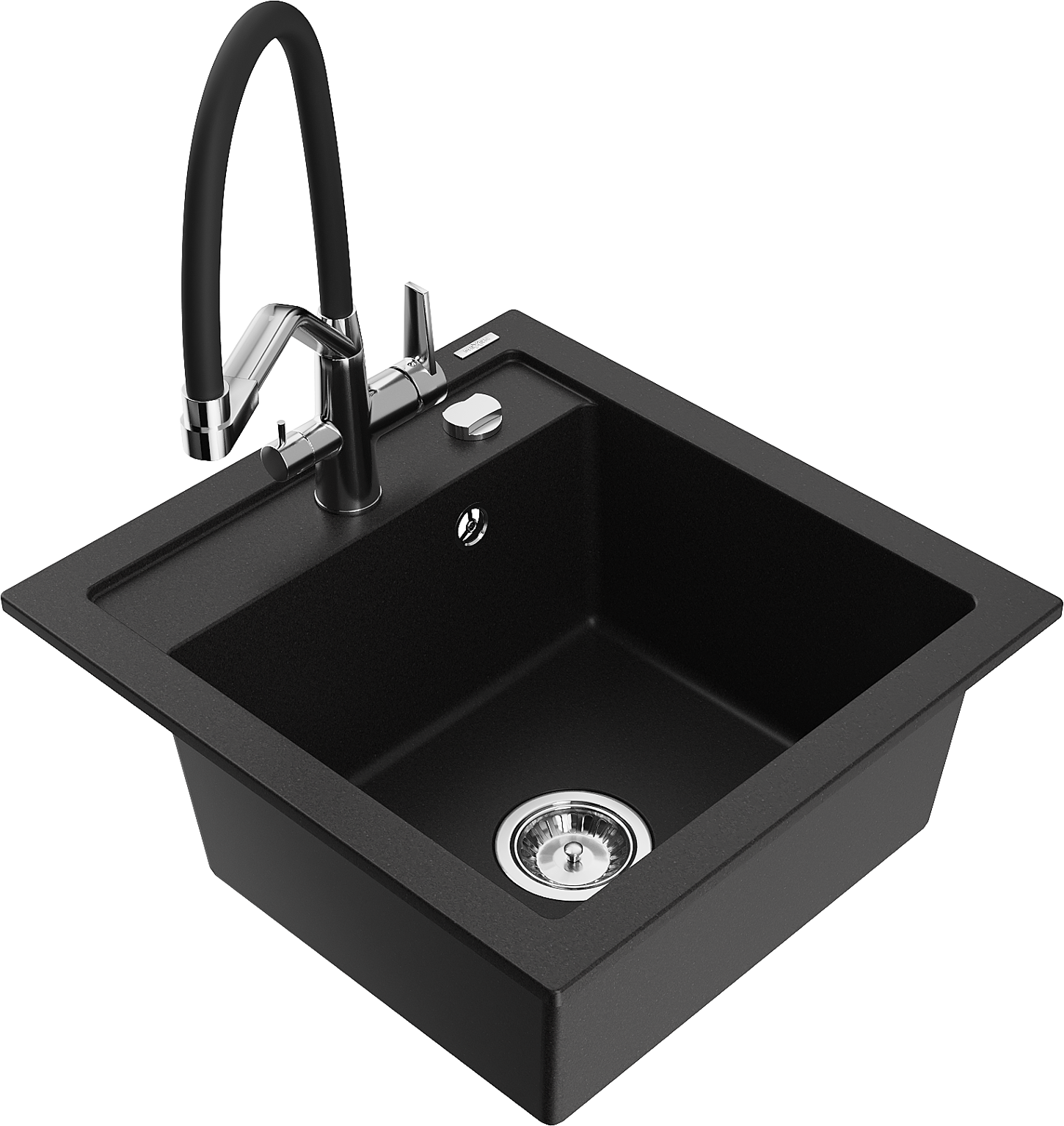 Mexen Vito vienos kameros granito plautuvė su virtuvės maišytuvu Duo, juodos spalvos - 6503-77-671701-07