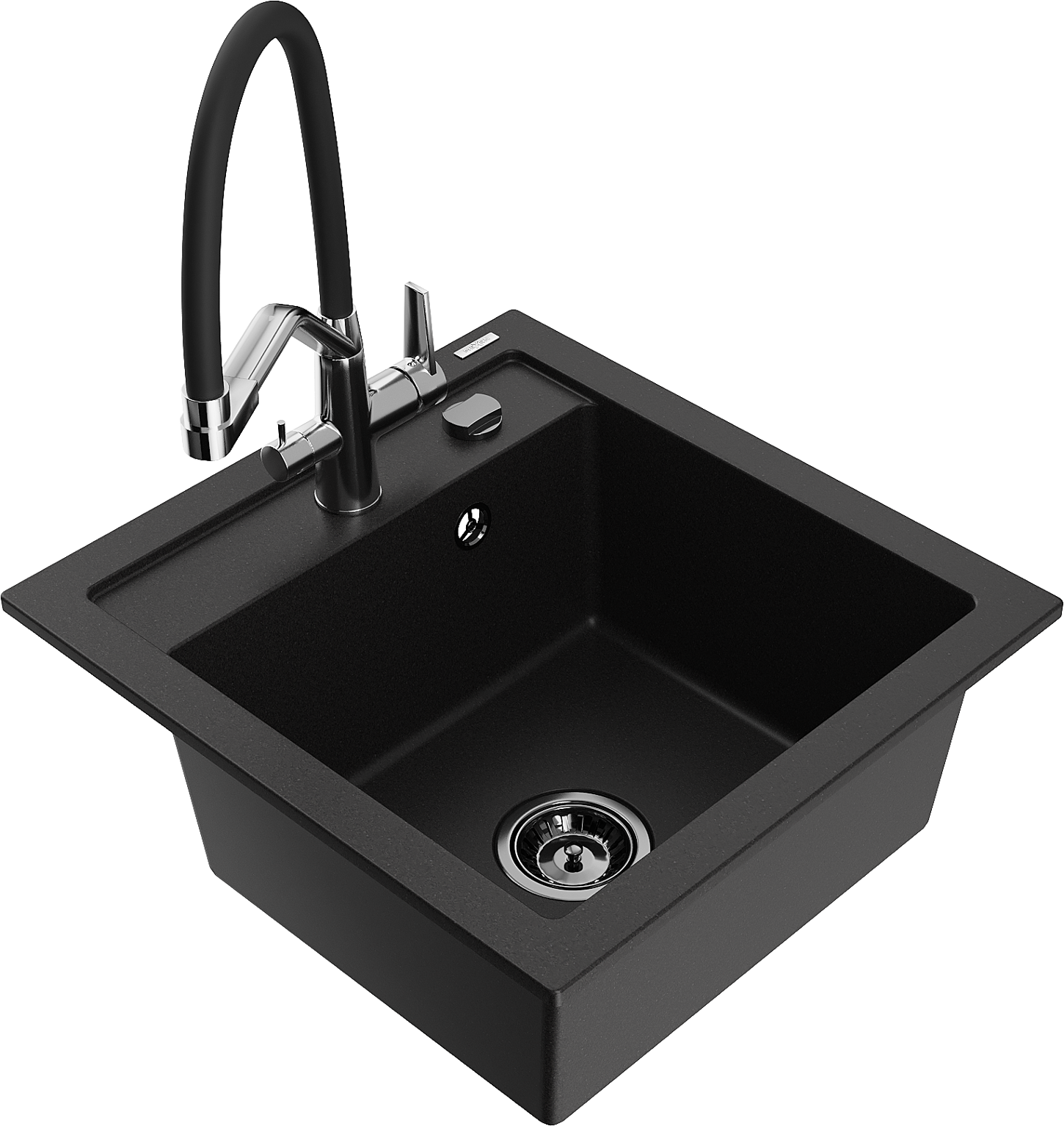 Mexen Vito granito plautuvė 1 skyrelio su Duo virtuviniu maišytuvu, juodas - 6503-77-671701-07-B