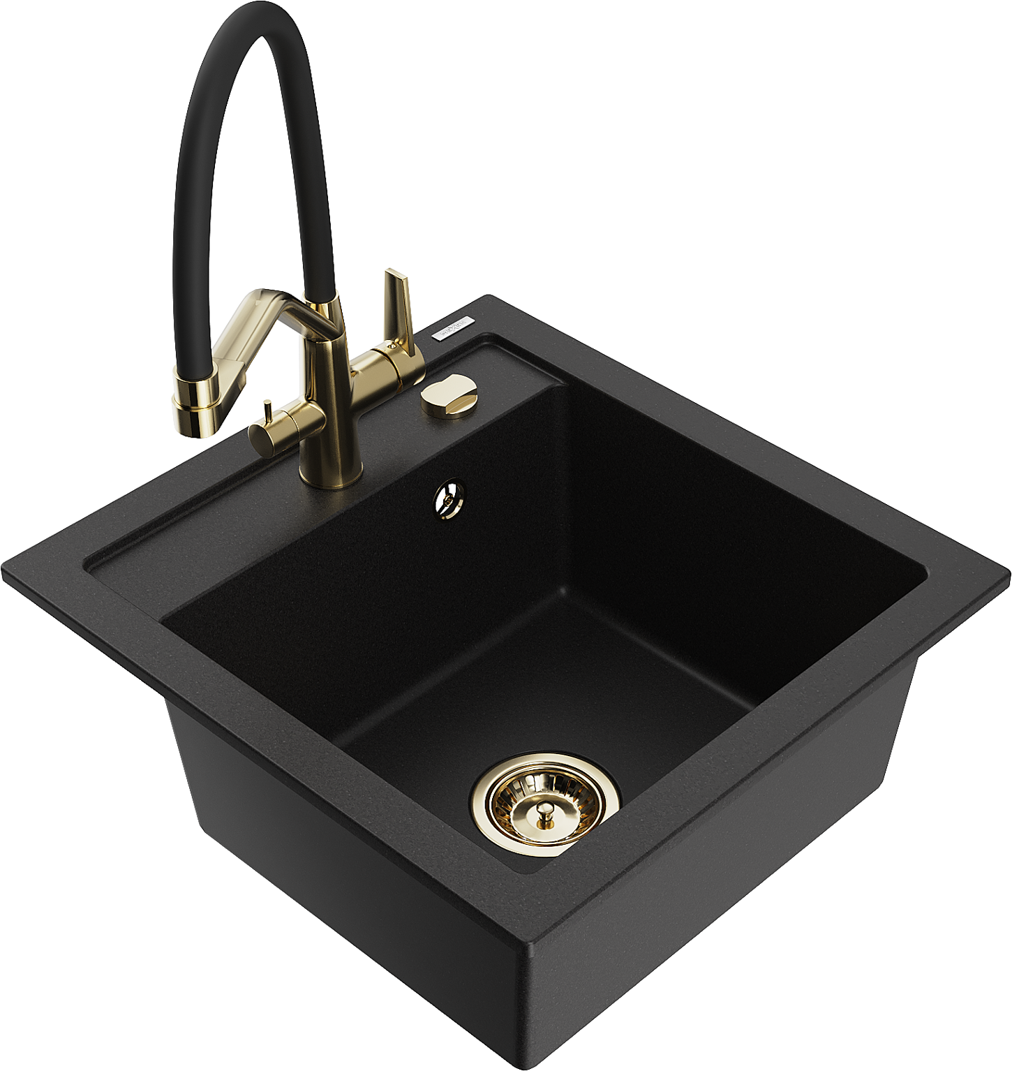 Mexen Vito granitinis virtuvės kriauklė su viena kamera ir virtuvės maišytuvu Duo, juodas - 6503-77-671701-57-G