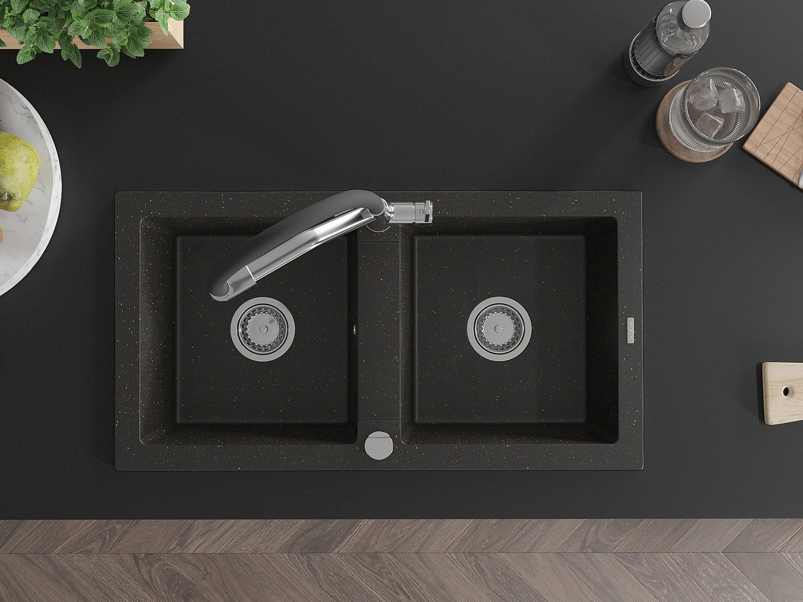 Kriauklės paviršius yra atsparūs dėmėms ir spalvos pasikeitimui, dėl kurio lengva valyti ir ilgą laiką išlaikyti savo spalvą. Estetinis ir praktiškai papildantis kiekvieną virtuvę.