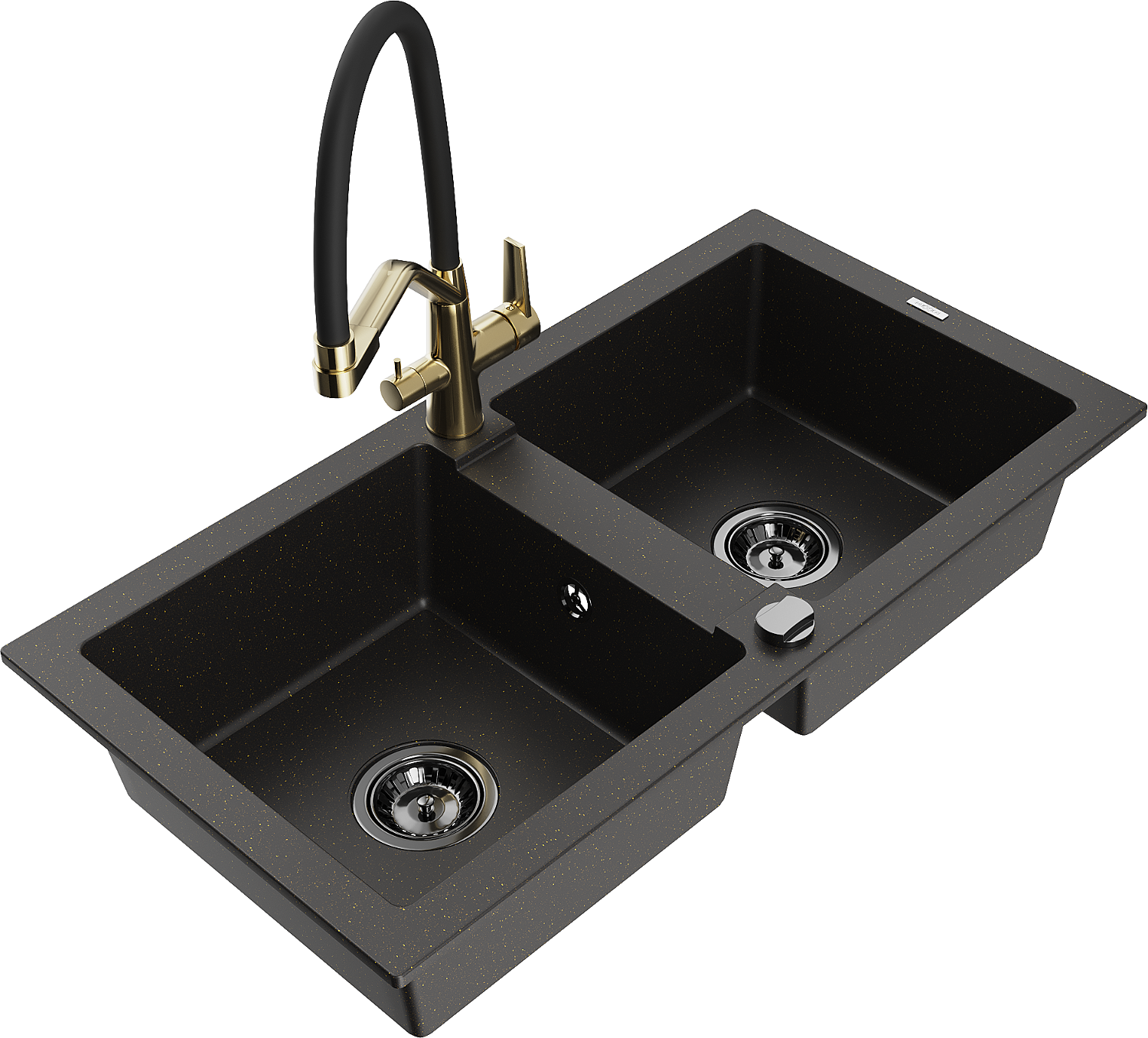 Mexen Mario grindinis dviejų skyrių plautuvas su duo virtuviniu čiaupu, juodas/auksinis metalikas - 6504-75-671701-57-B