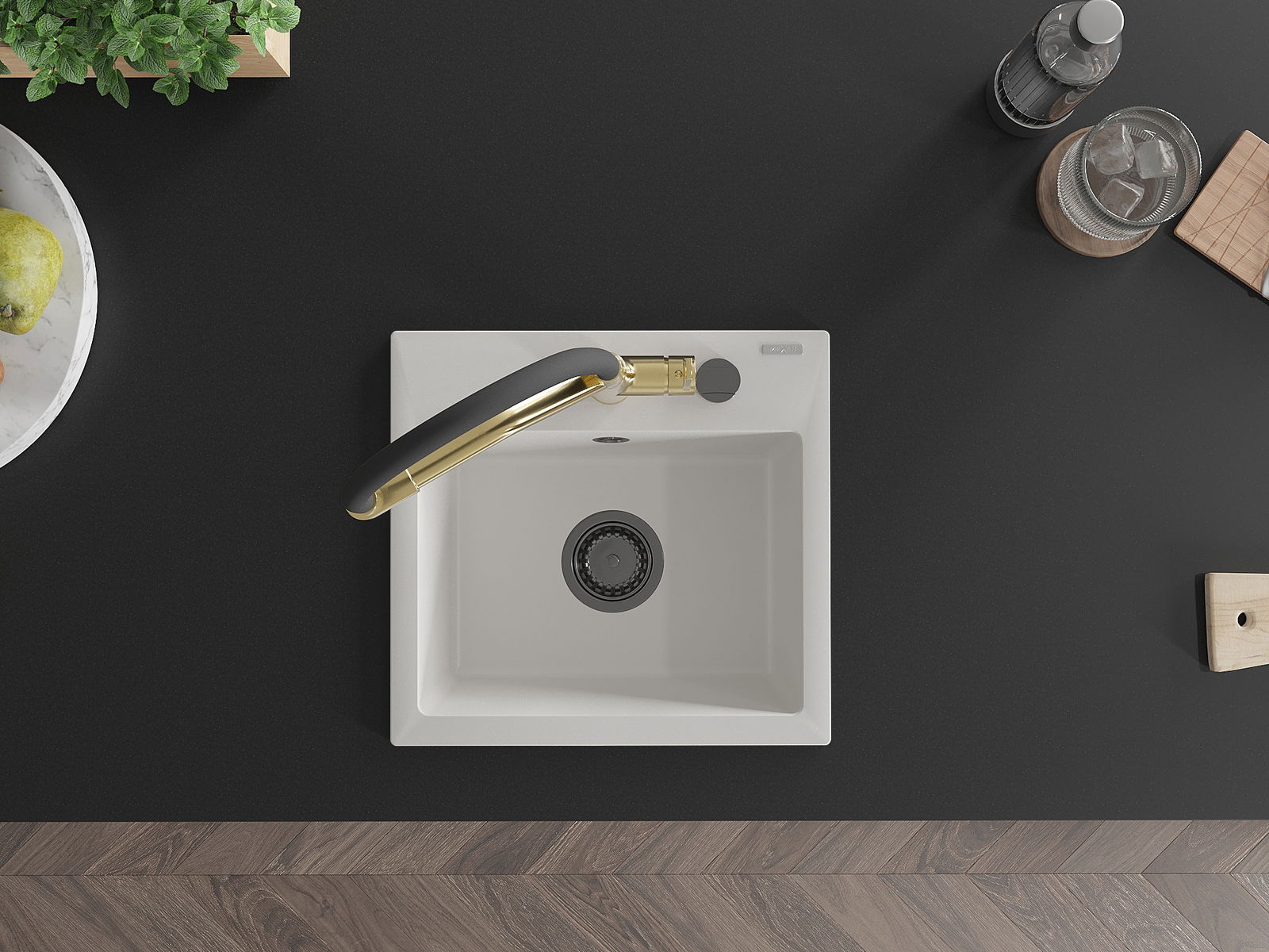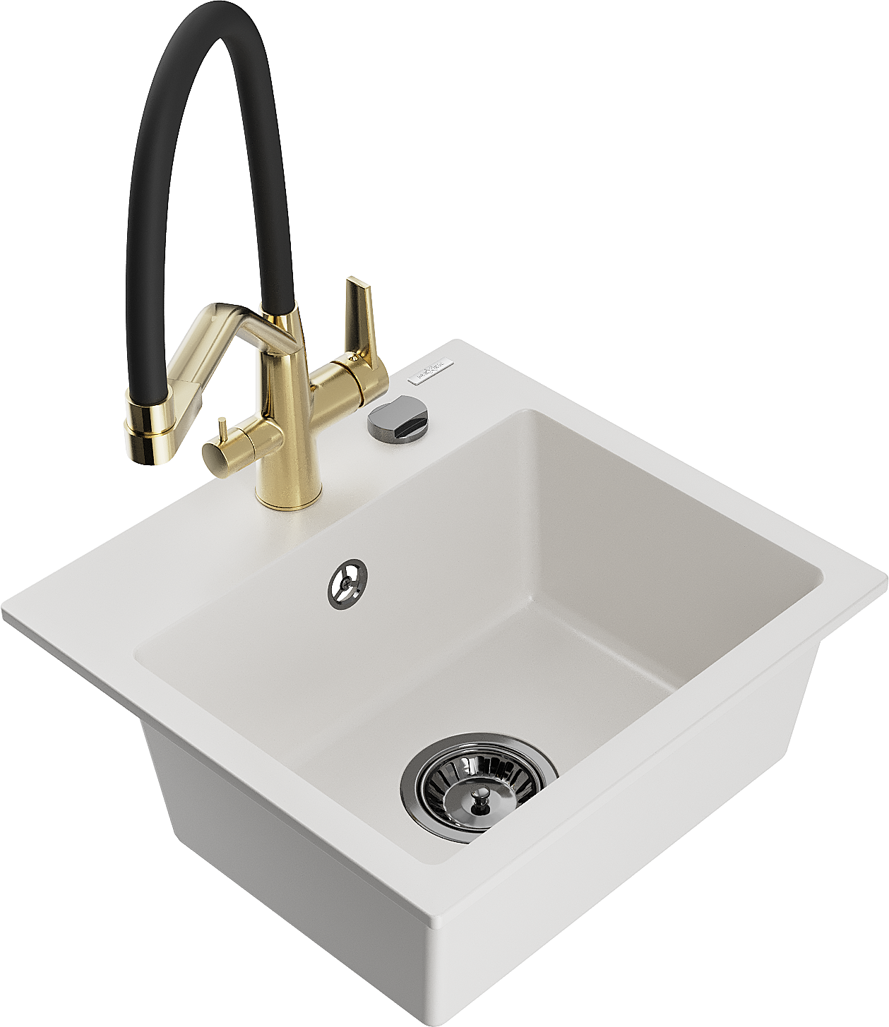 Mexen Milo granitinis virtuvės kriauklė 1-skyrius su Duo virtuvės maišytuvu, baltas - 6505-20-671701-57-B