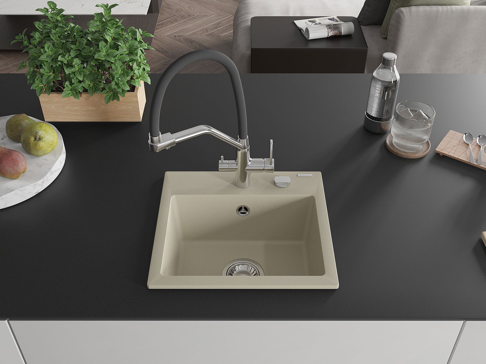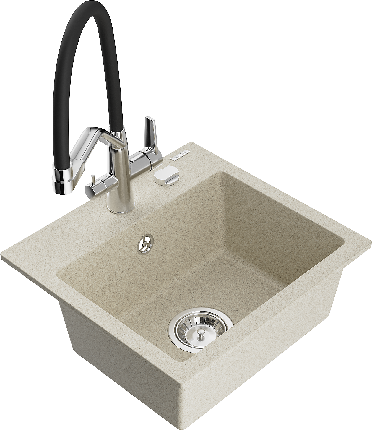 Mexen Milo vienos komeros granitinė plautuvė su virtuviniu maišytuvu Duo, smėlio spalvos - 6505-69-671701-07
