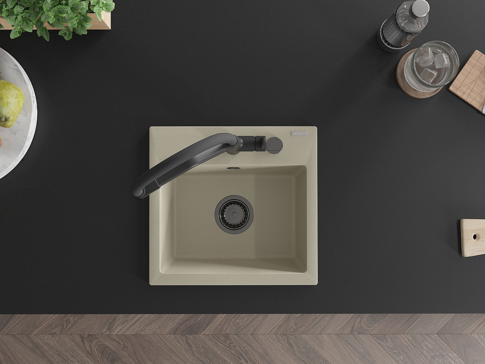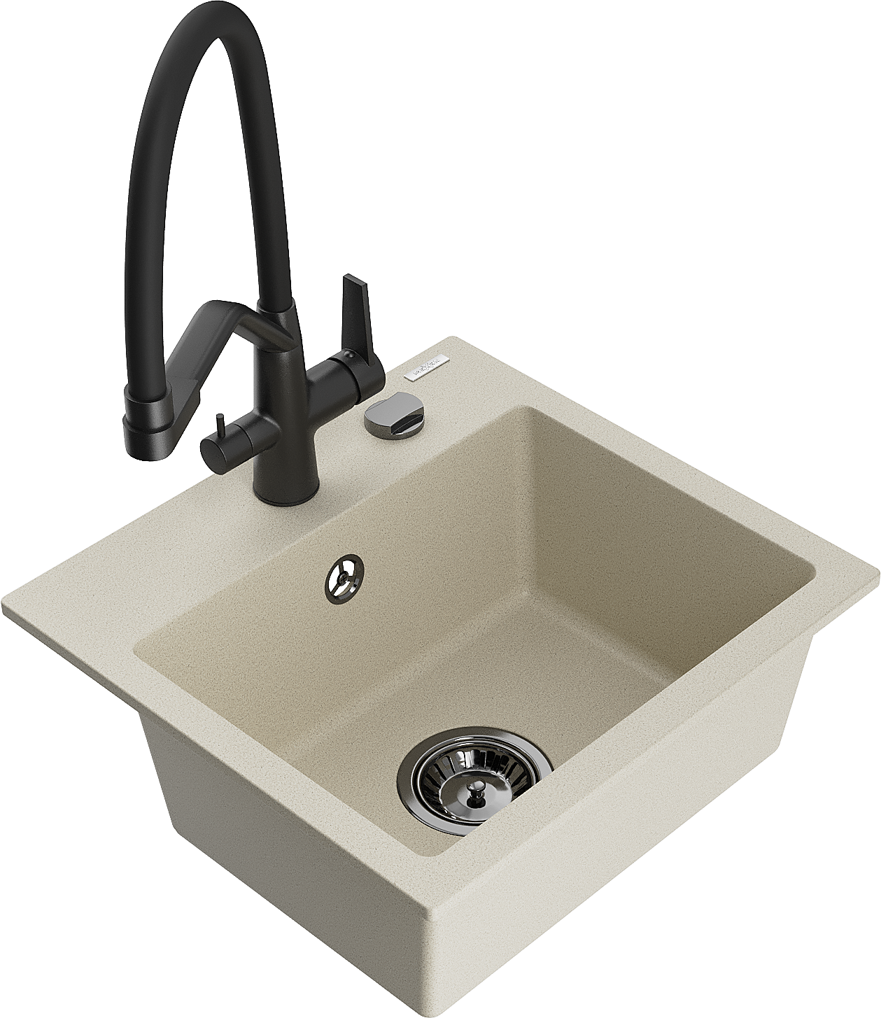 Mexen Milo granito kriauklė su viena kamera ir virtuviniu maišytuvu Duo, smėlio spalvos - 6505-69-671701-70-B