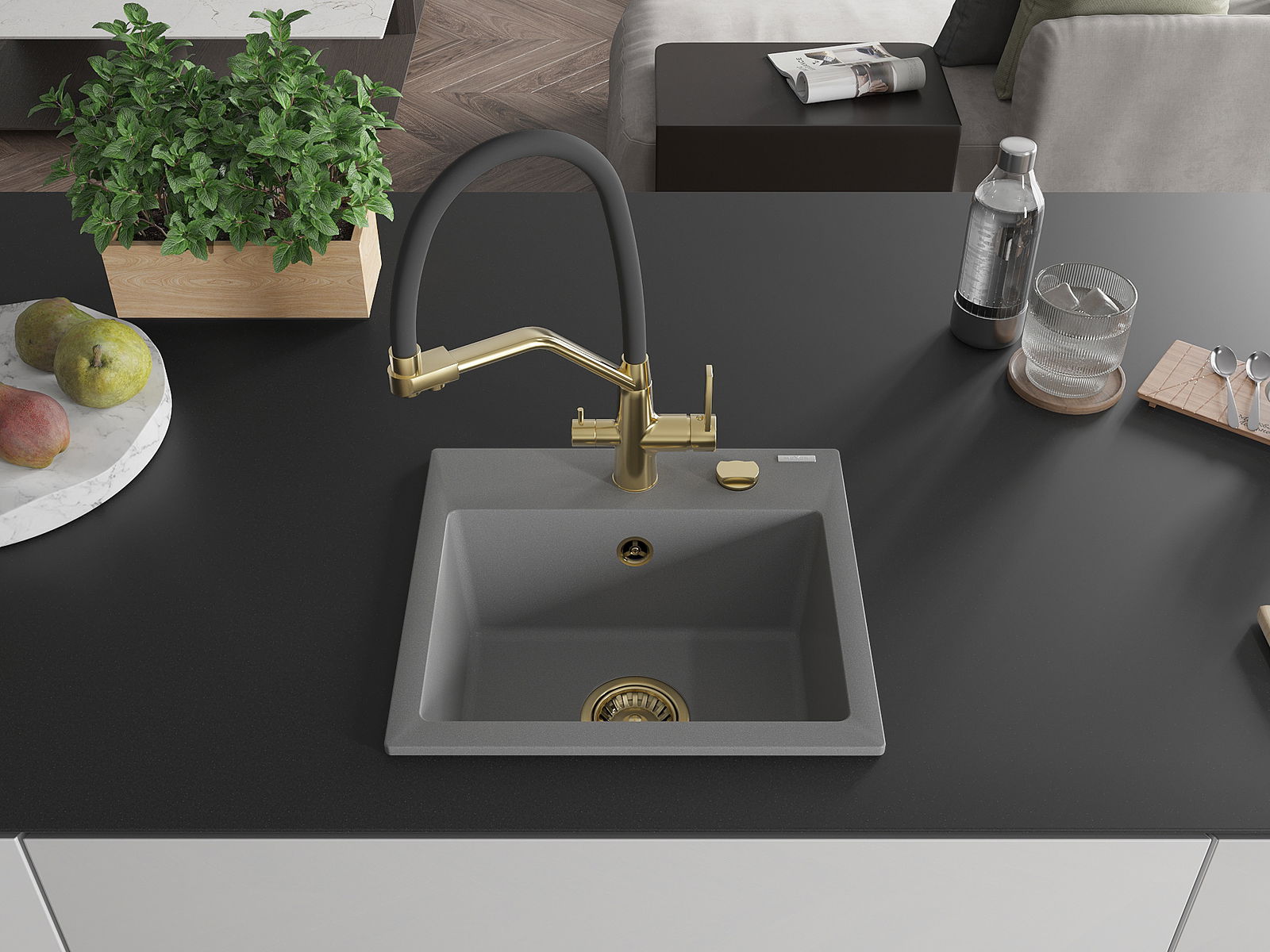 Mexen Milo granitinė vienos kameros plautuvė su virtuviniu maišytuvu Duo, pilka - 6505-71-671701-57-G