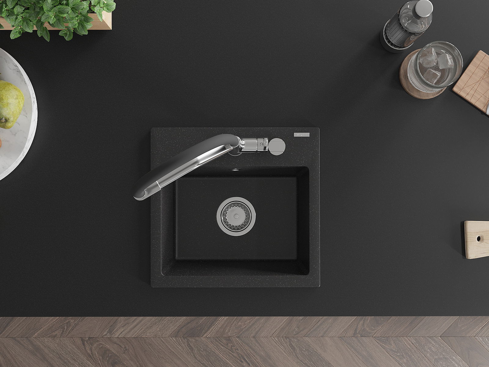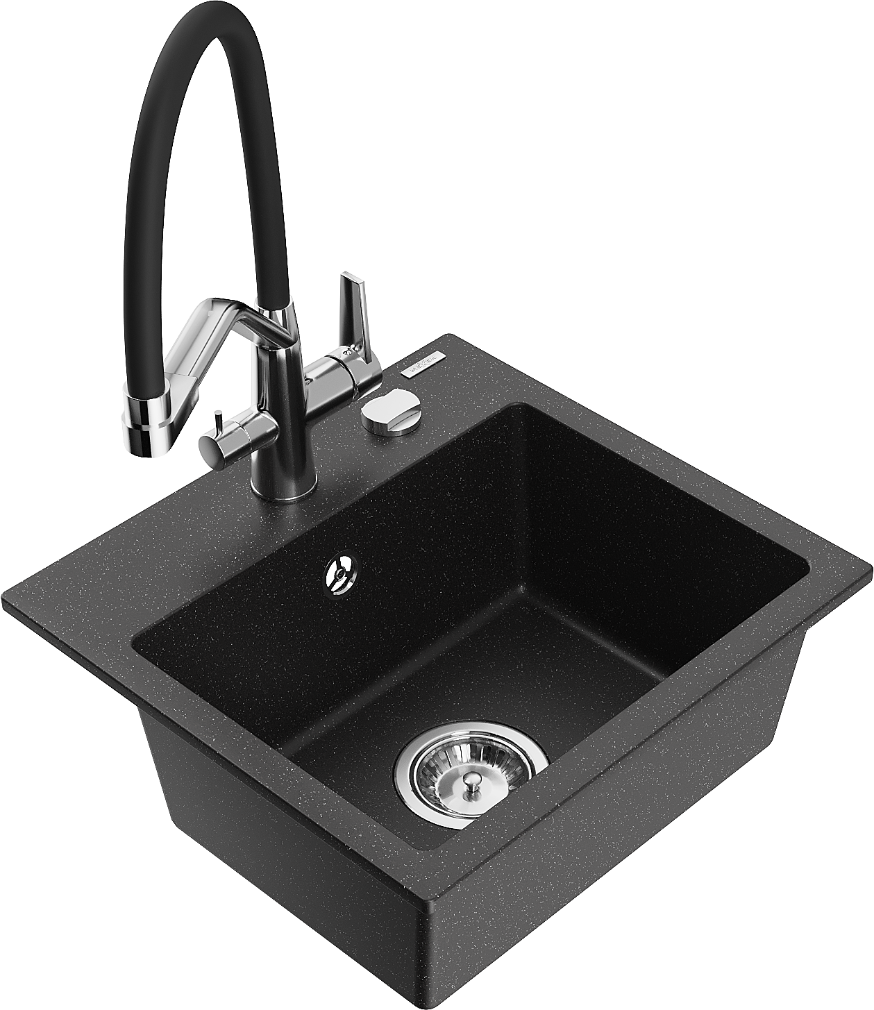 Mexen Milo granitinis vienos kameros virtuvinis kriauklė su maišytuvu Duo, juodas/sidabrinis metalikas - 6505-73-671701-07
