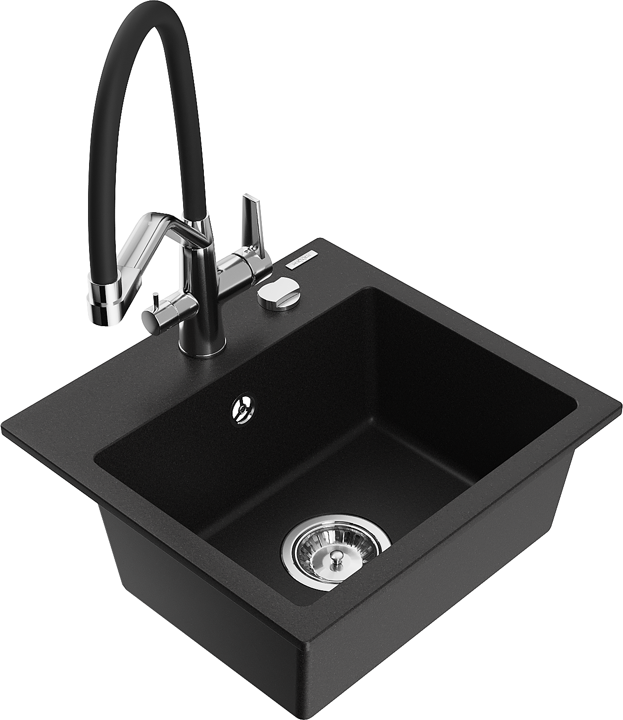 Mexen Milo 1-dubeninė granito kriauklė su virtuviniu maišytuvu Duo, juodas - 6505-77-671701-07