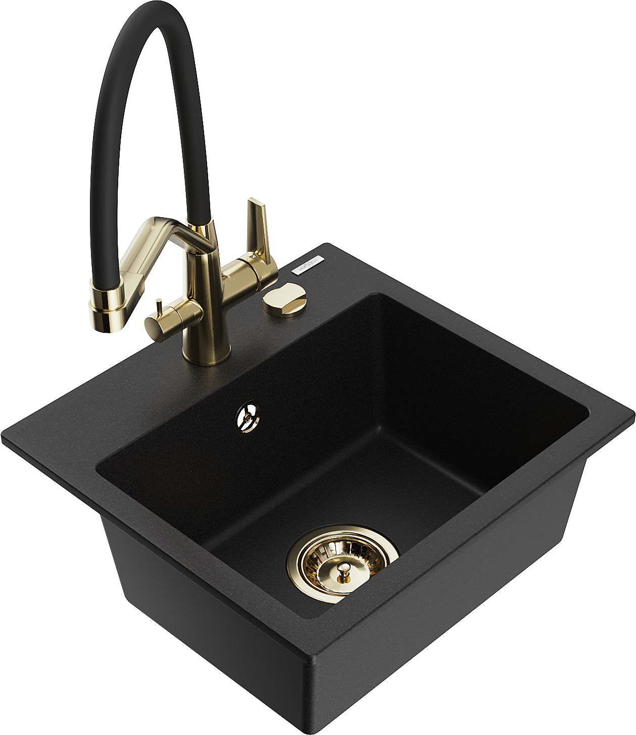 Mexen Milo vienos kameros granitinė plautuvė su virtuviniu maišytuvu Duo, juoda - 6505-77-671701-57-G