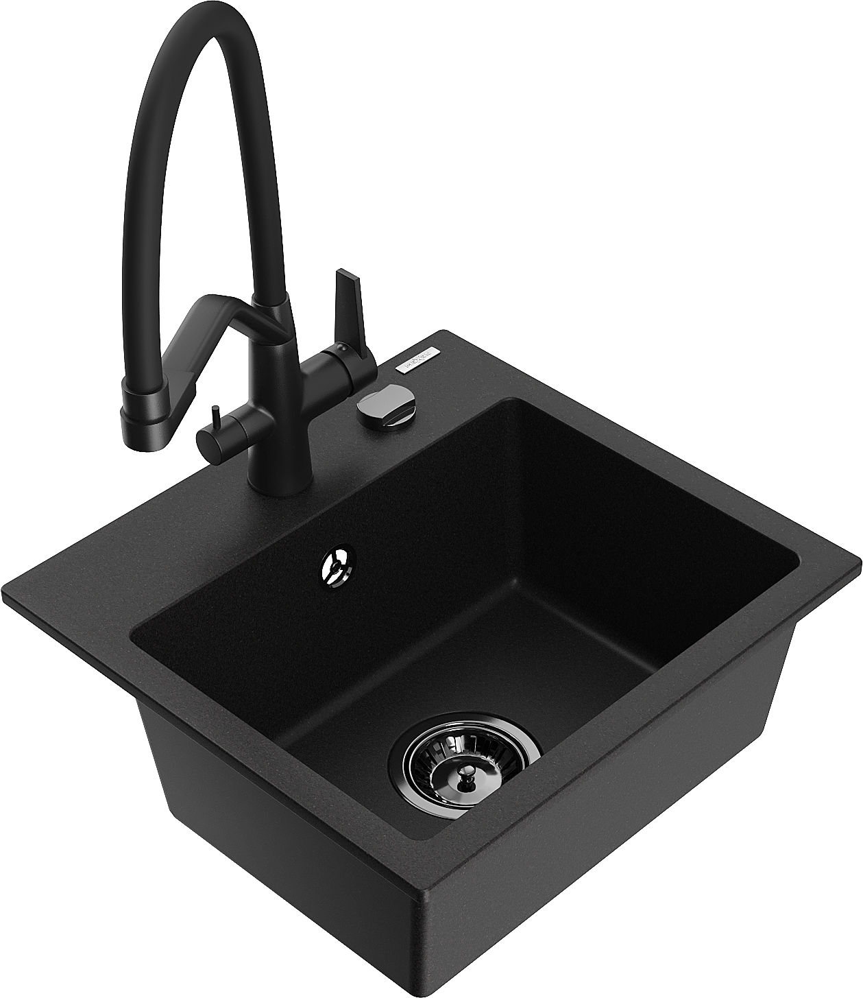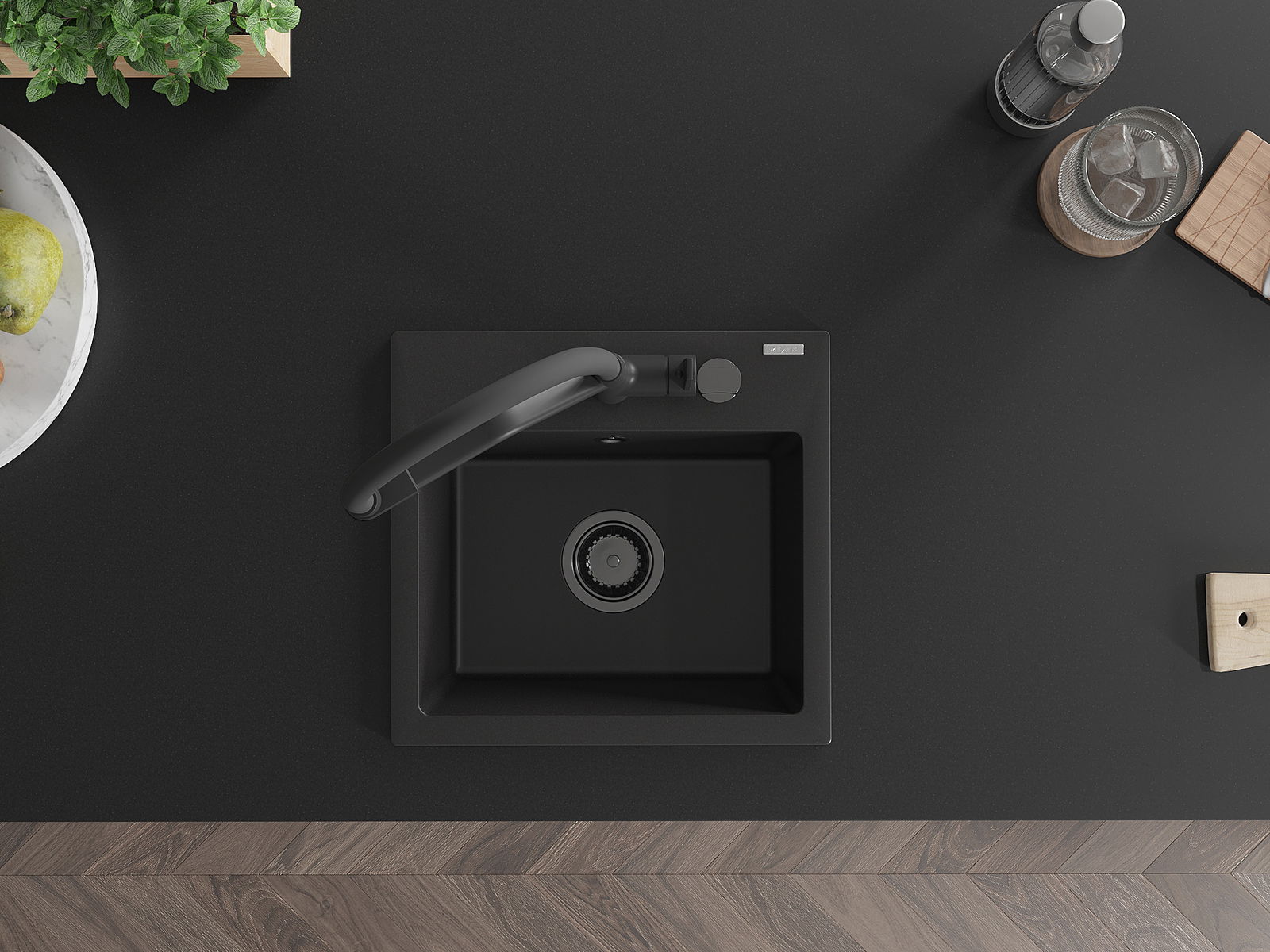 Mexen Milo granitinis vienos dalies plautuvės komplektas su virtuviniu maišytuvu Duo, juodas - 6505-77-671701-70-B