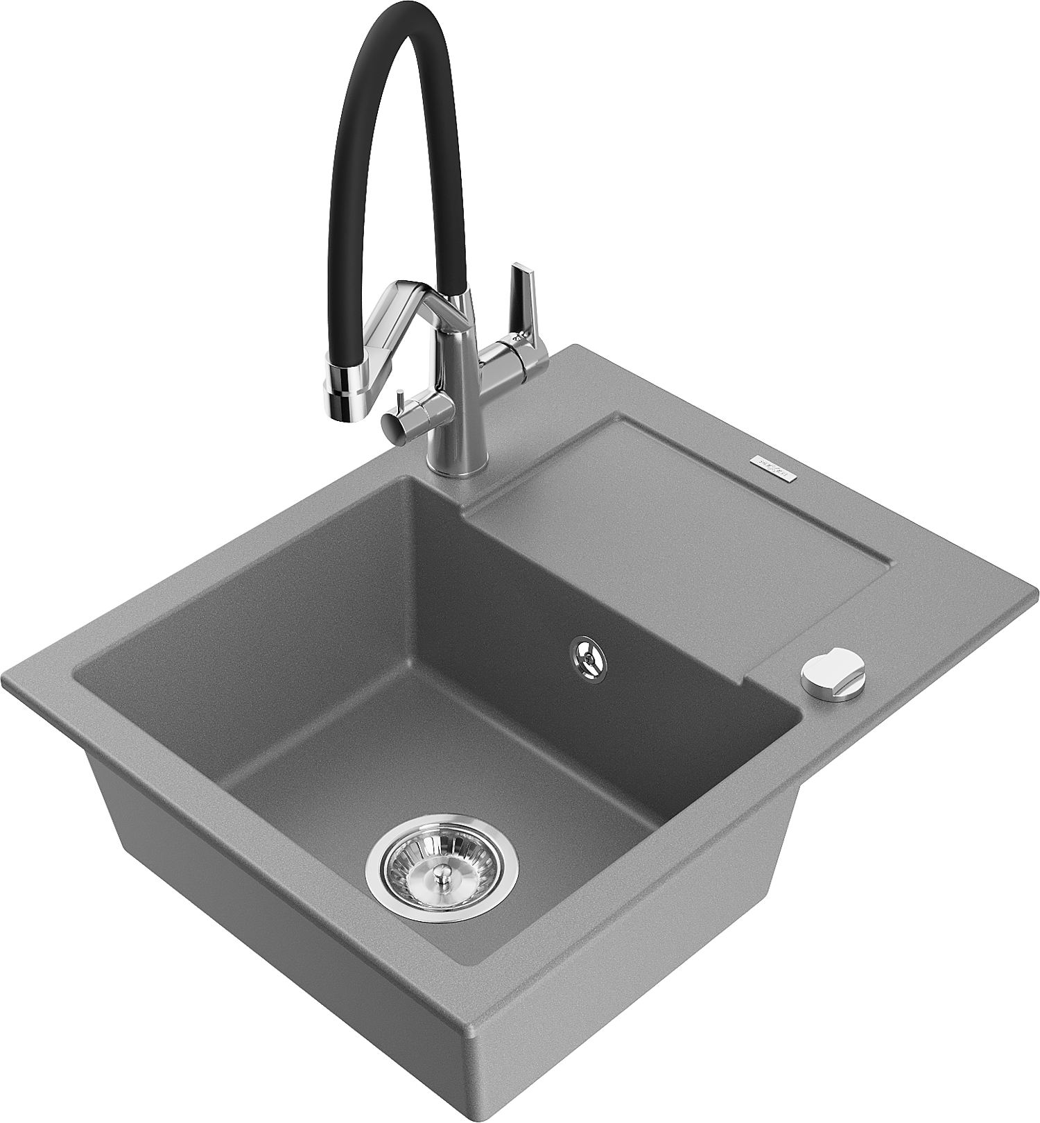 Mexen Enzo akmens masės vienos plautuvės kriauklė su nusausinimo stalu ir virtuviniu maišytuvu Duo, pilkas - 6506-71-671701-07