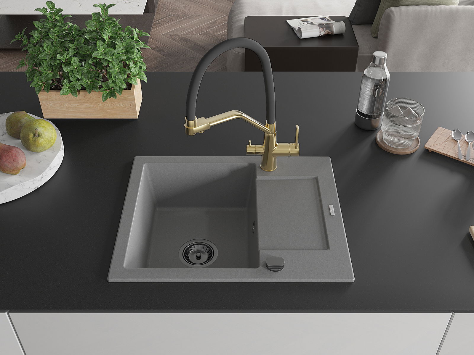 Kriauklės paviršius yra atsparūs dėmėms ir spalvos pasikeitimui, dėl kurio lengva valyti ir ilgą laiką išlaikyti savo spalvą. Estetinis ir praktiškai papildantis kiekvieną virtuvę.
