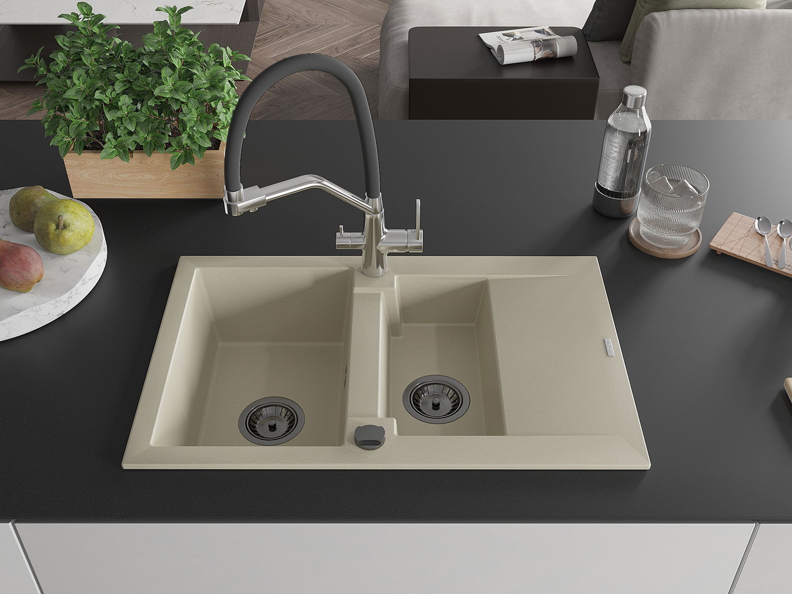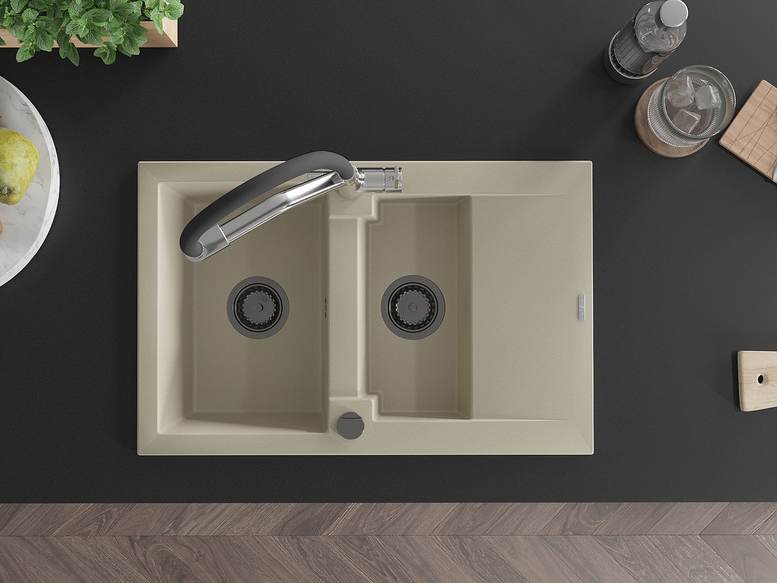 Kriauklės paviršius yra atsparūs dėmėms ir spalvos pasikeitimui, dėl kurio lengva valyti ir ilgą laiką išlaikyti savo spalvą. Estetinis ir praktiškai papildantis kiekvieną virtuvę.