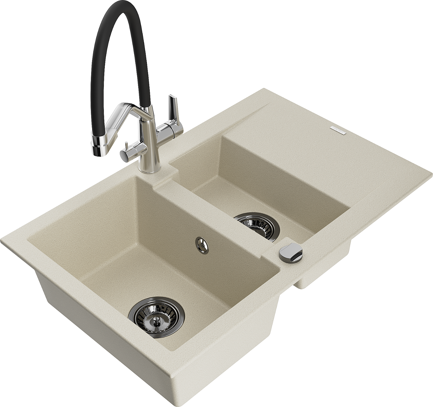 Mexen Gaspar granitinė plautuvė 1,5 skyriumi su lašintuvu ir Duo virtuviniu maišytuvu, smėlio - 6507-69-671701-07-B