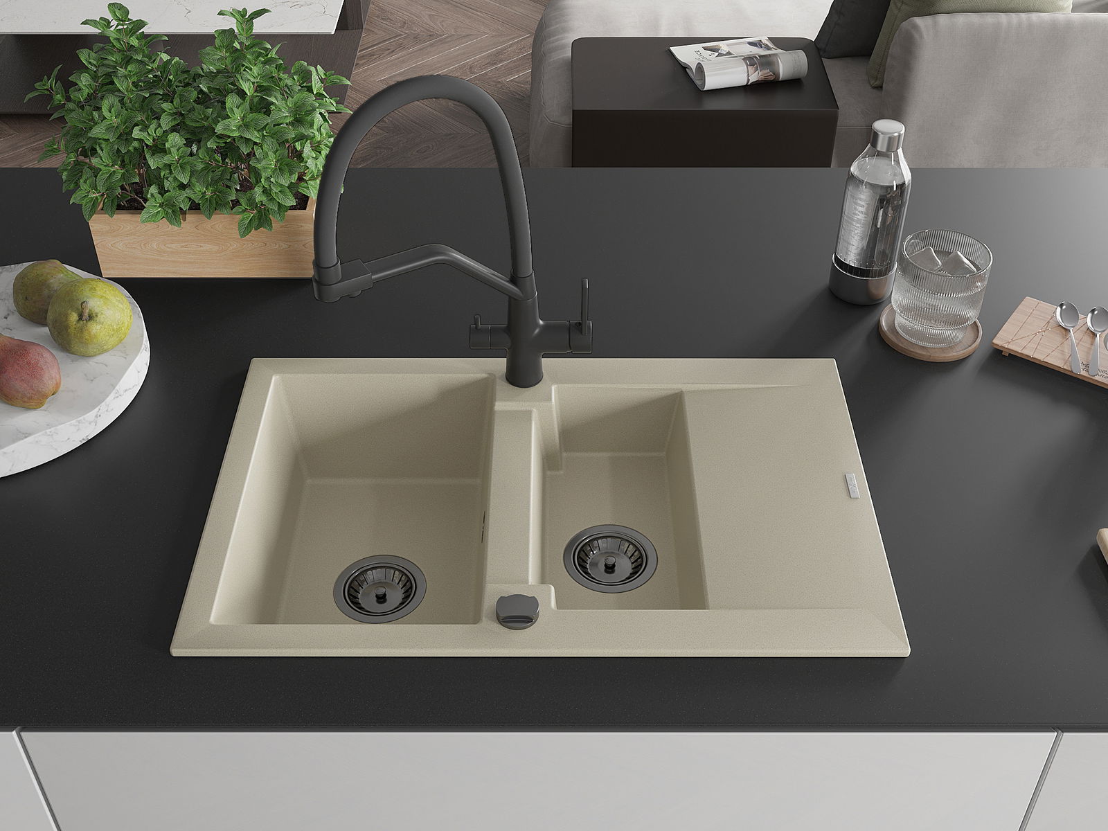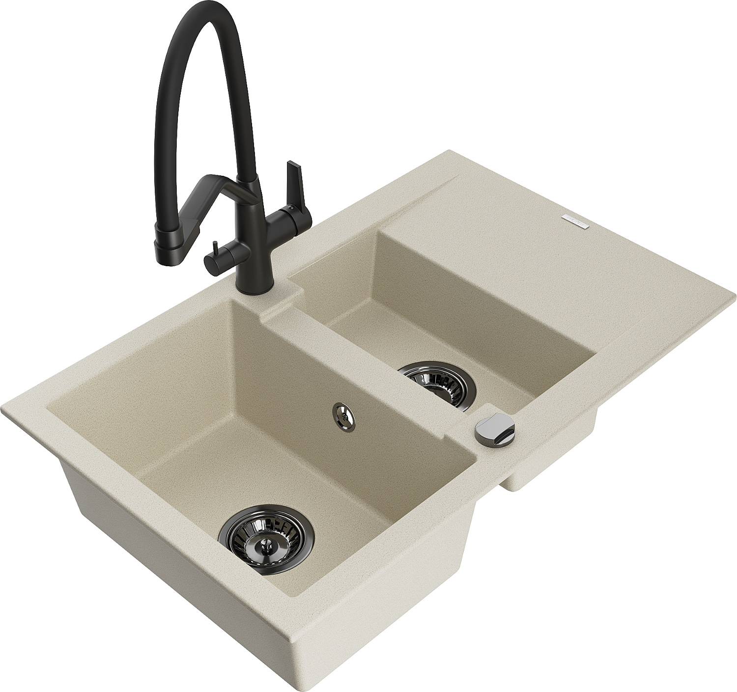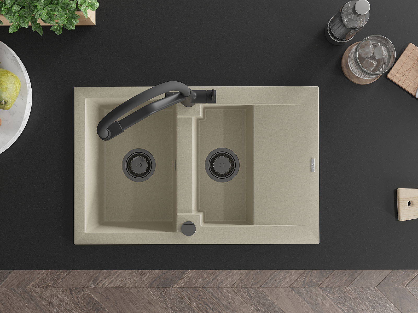 Mexen Gaspar 1,5 kamerų granitinė virtuvės kriauklė su lašintuvu ir Duo virtuvės maišytuvu, smėlio spalvos