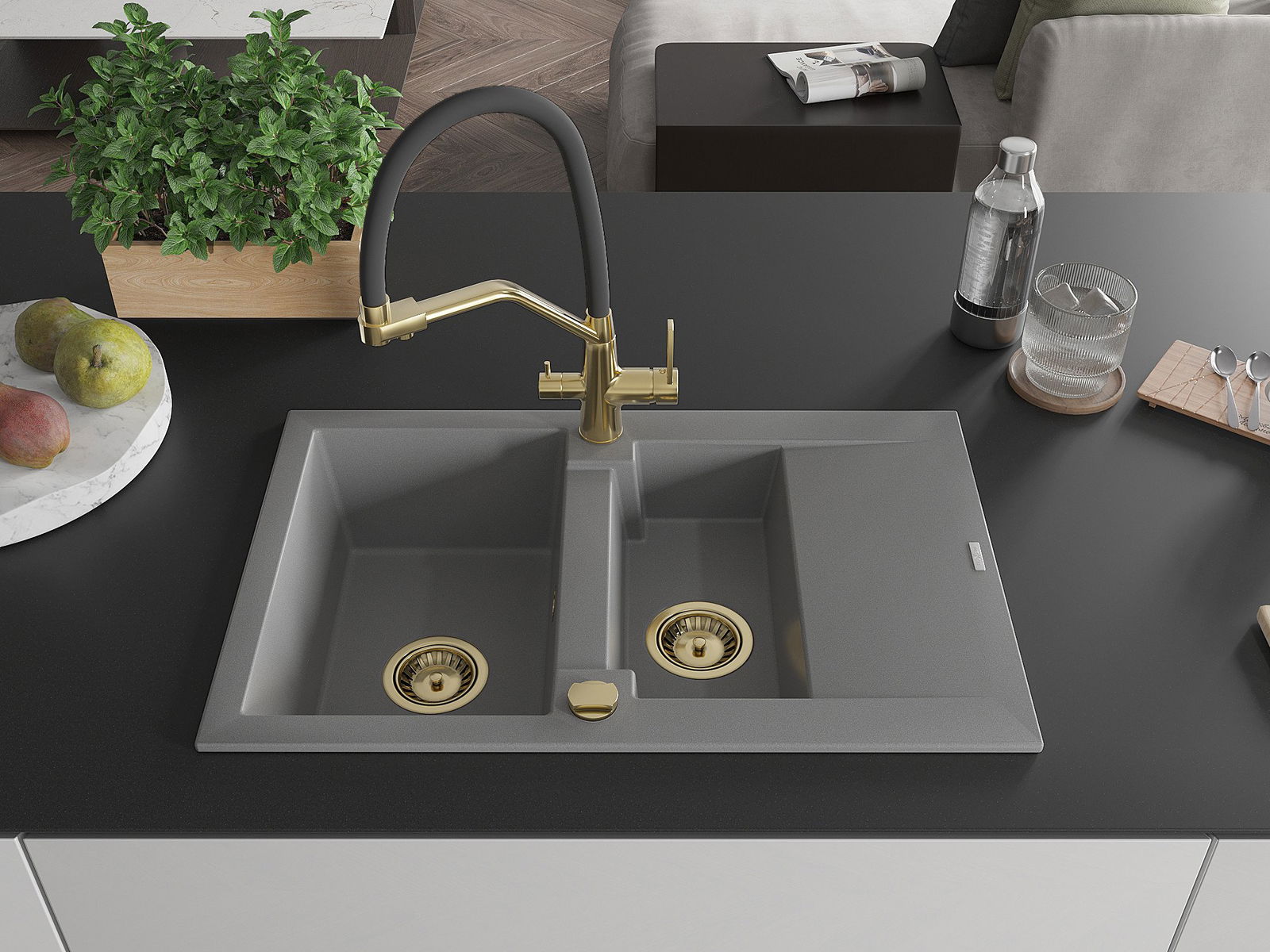 Kriauklės paviršius yra atsparūs dėmėms ir spalvos pasikeitimui, dėl kurio lengva valyti ir ilgą laiką išlaikyti savo spalvą. Estetinis ir praktiškai papildantis kiekvieną virtuvę.