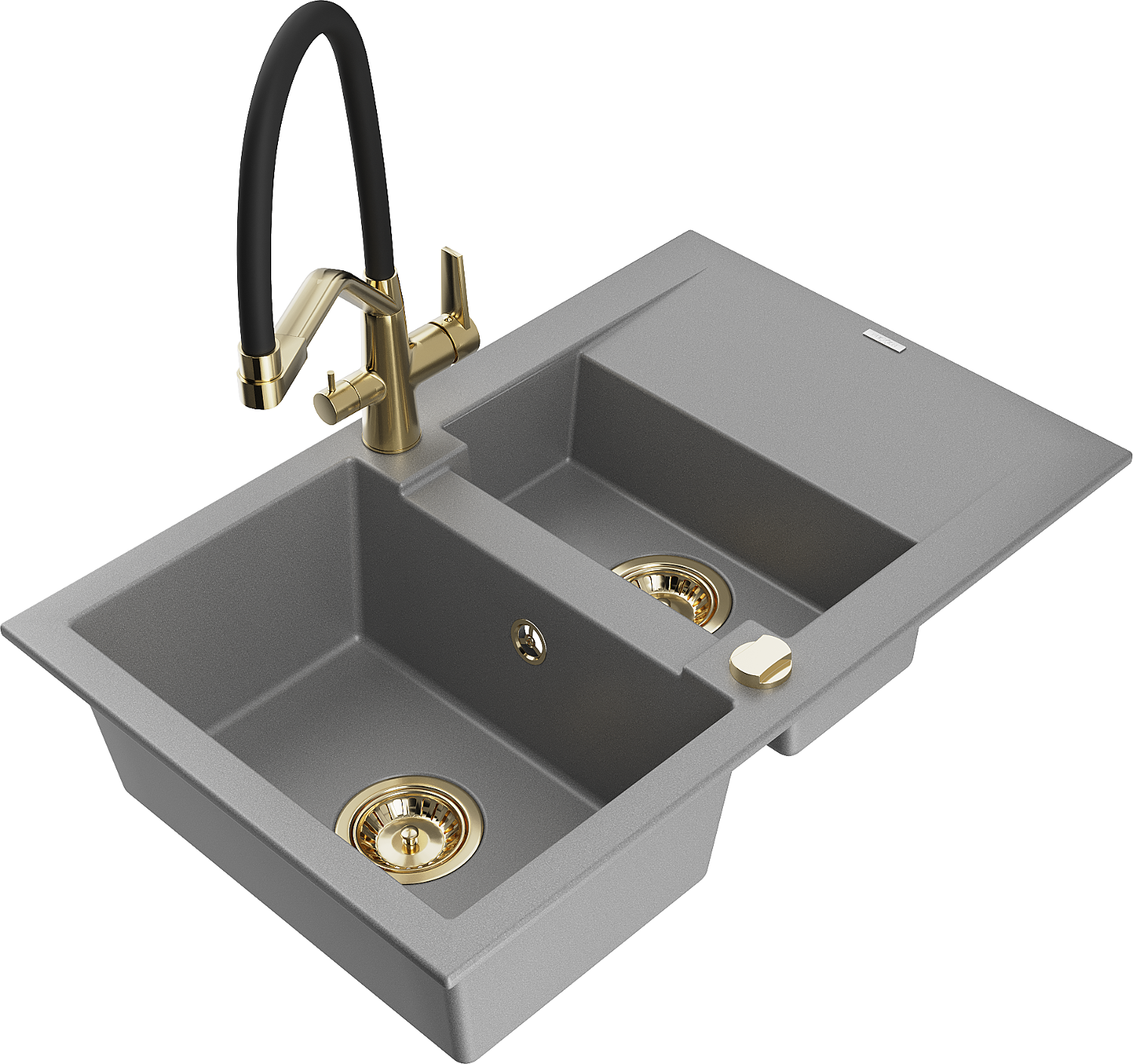 Mexen Gaspar granito plautuvė 1,5 skylių su nutekėjimu ir virtuviniu maišytuvu Duo, pilka - 6507-71-671701-57-G