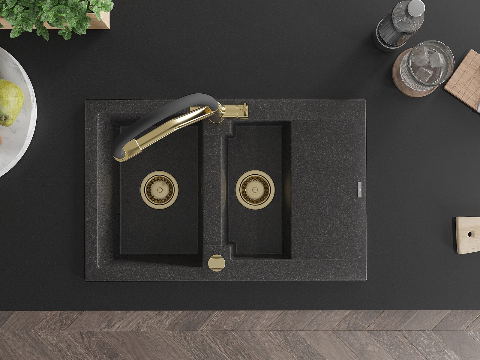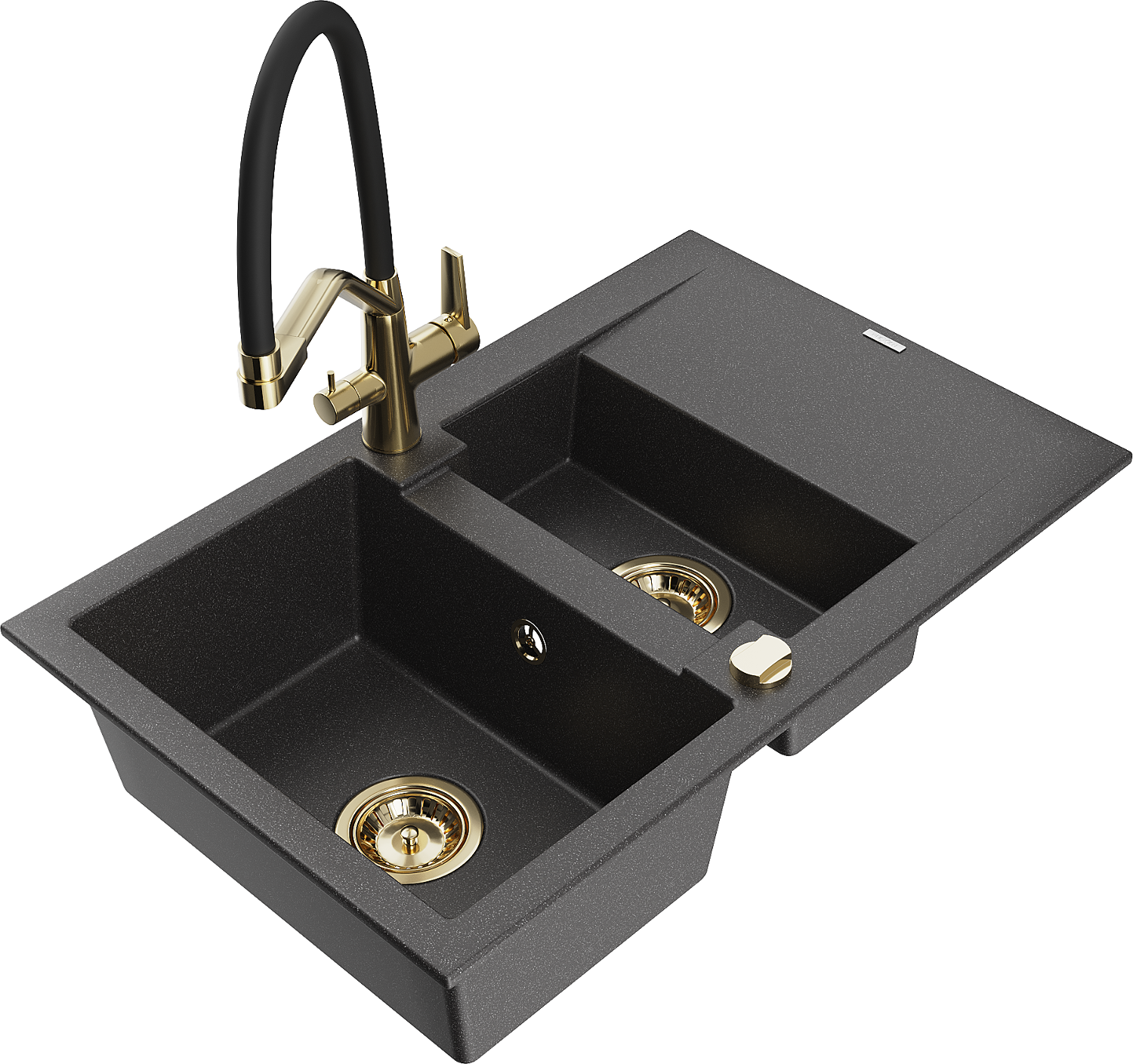 Mexen Gaspar granitinė kriauklė 1,5 sekcija su nusausintuvu ir virtuviniu maišytuvu Duo, juodas taškuotas - 6507-76-671701-57-G