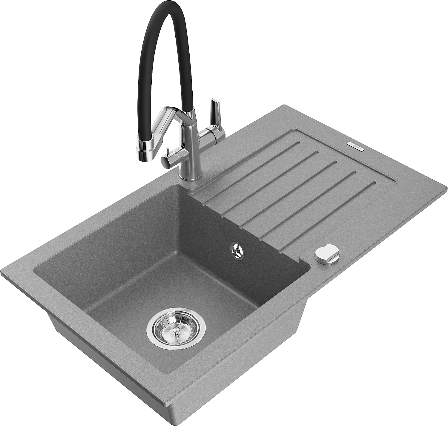 Mexen Pablo granito virtuvės kriauklė su 1 skyriumi, varva ir Duo virtuviniu maišytuvu, pilkas - 6510-71-671701-07