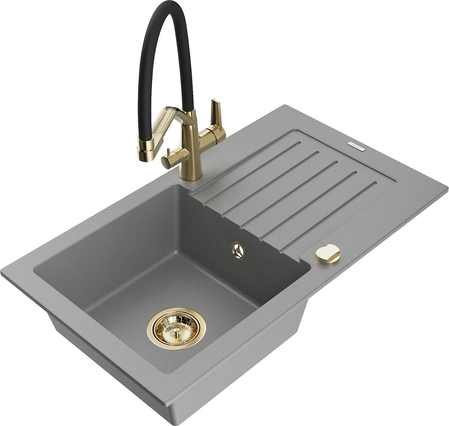 Mexen Pablo granitinė vieno dubens plautuvė su nusausintuvu ir virtuviniu maišytuvu Duo, pilka - 6510-71-671701-57-G