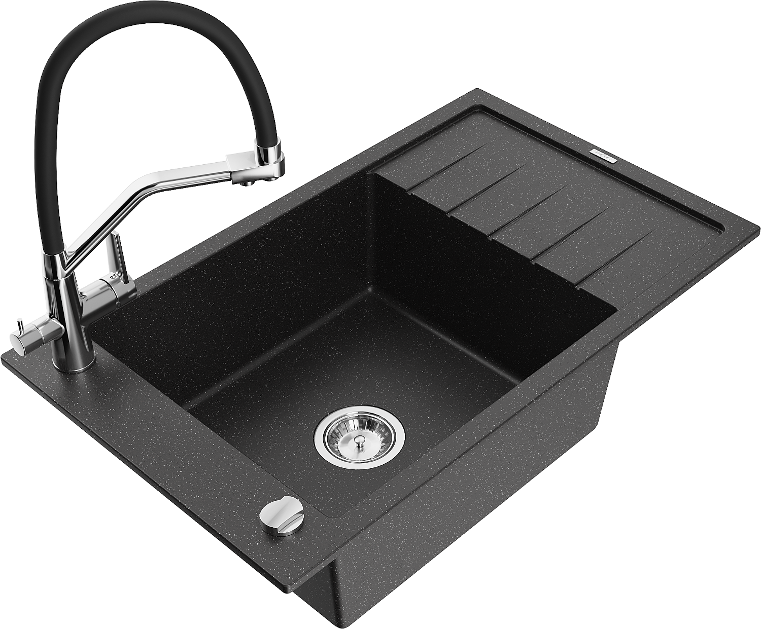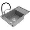 Mexen Elias granitinė vienos plautuvės kriauklė su nutekėjimu ir Duo virtuvės maišytuvu, juoda/sidabrinė metalik