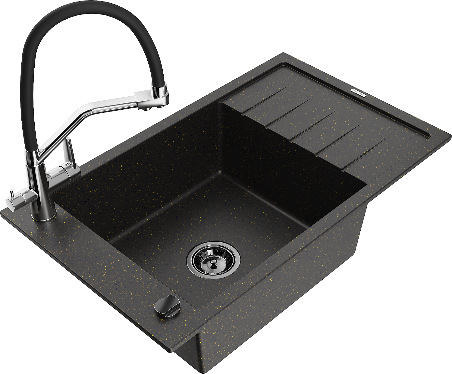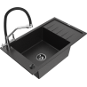 Mexen Elias granitinė 1 skyrelio plautuvė su nusausintuvu ir virtuviniu maišytuvu Duo, juodas/auksinis metalikas
