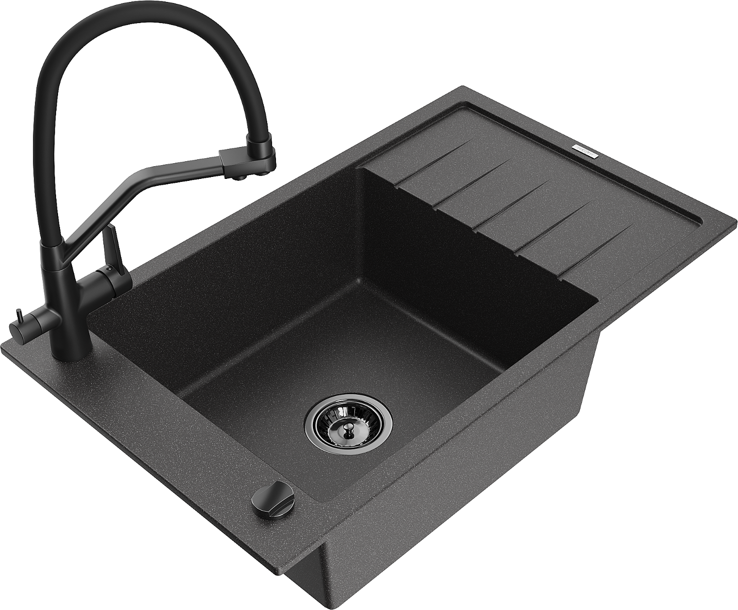 Mexen Elias vienos sekcijos granitinė plautuvė su drenažu ir Duo virtuvės maišytuvu, juoda dėmėta - 6511-76-671701-70-B